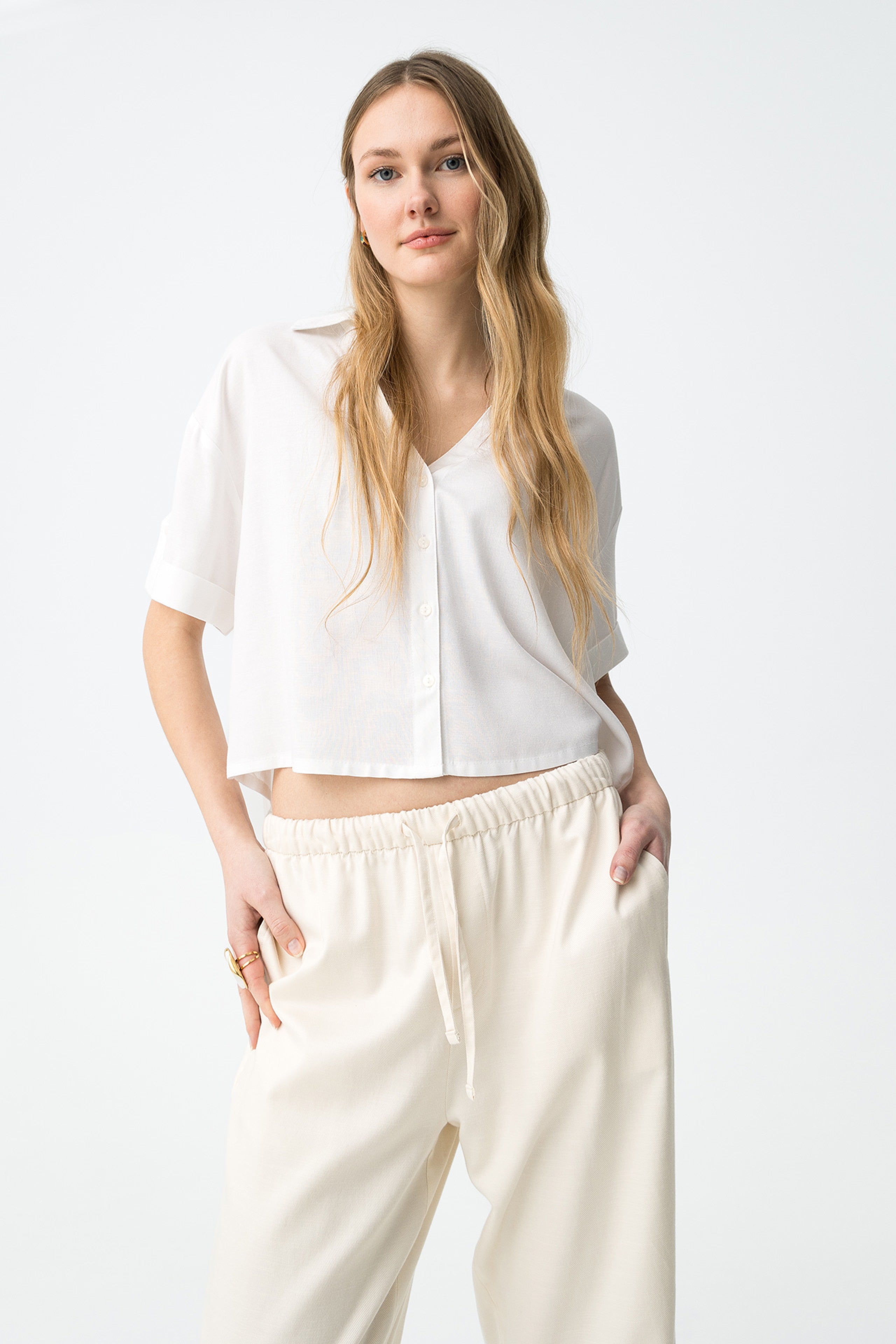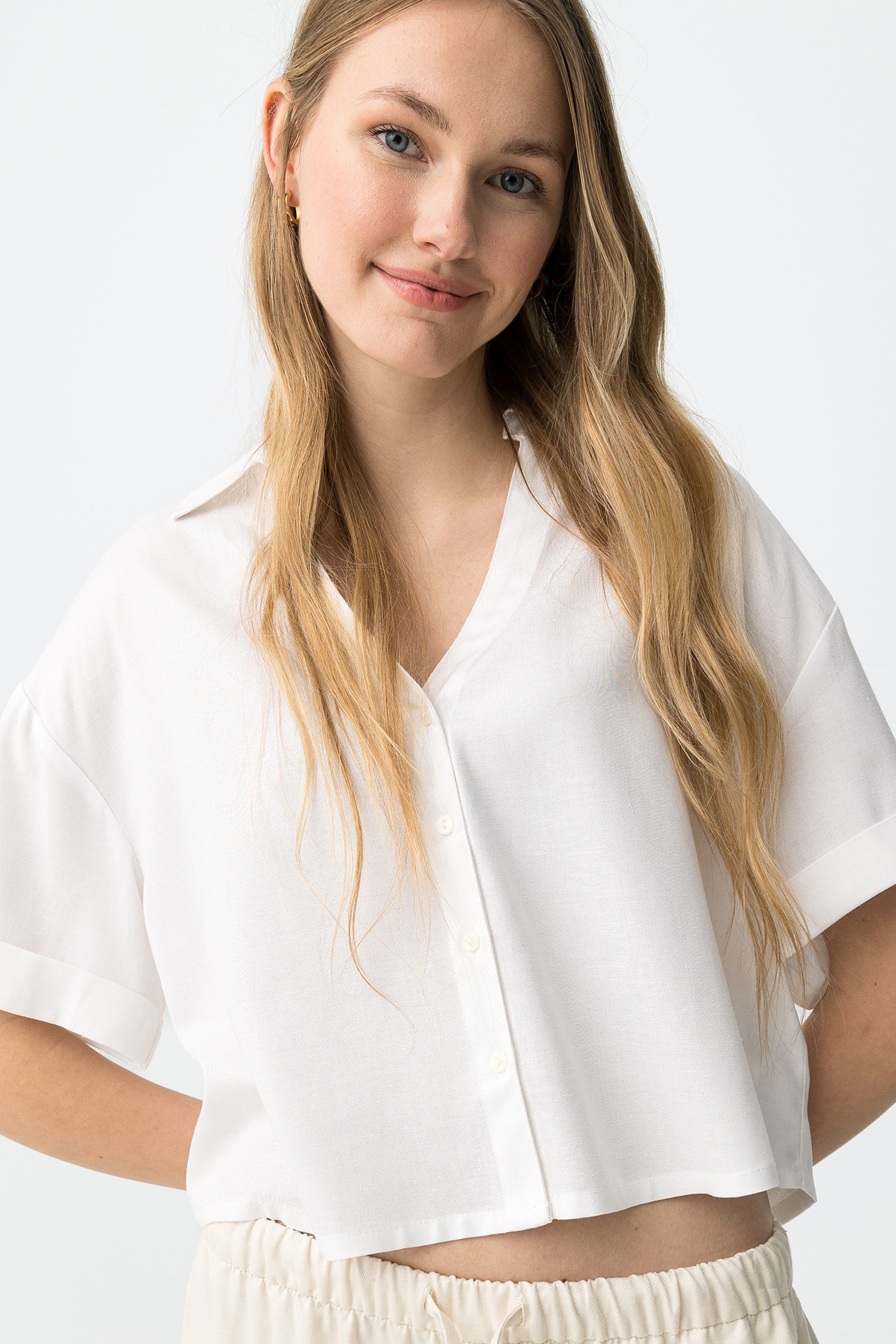 Camisa corta color crudo fluida Tiffosi