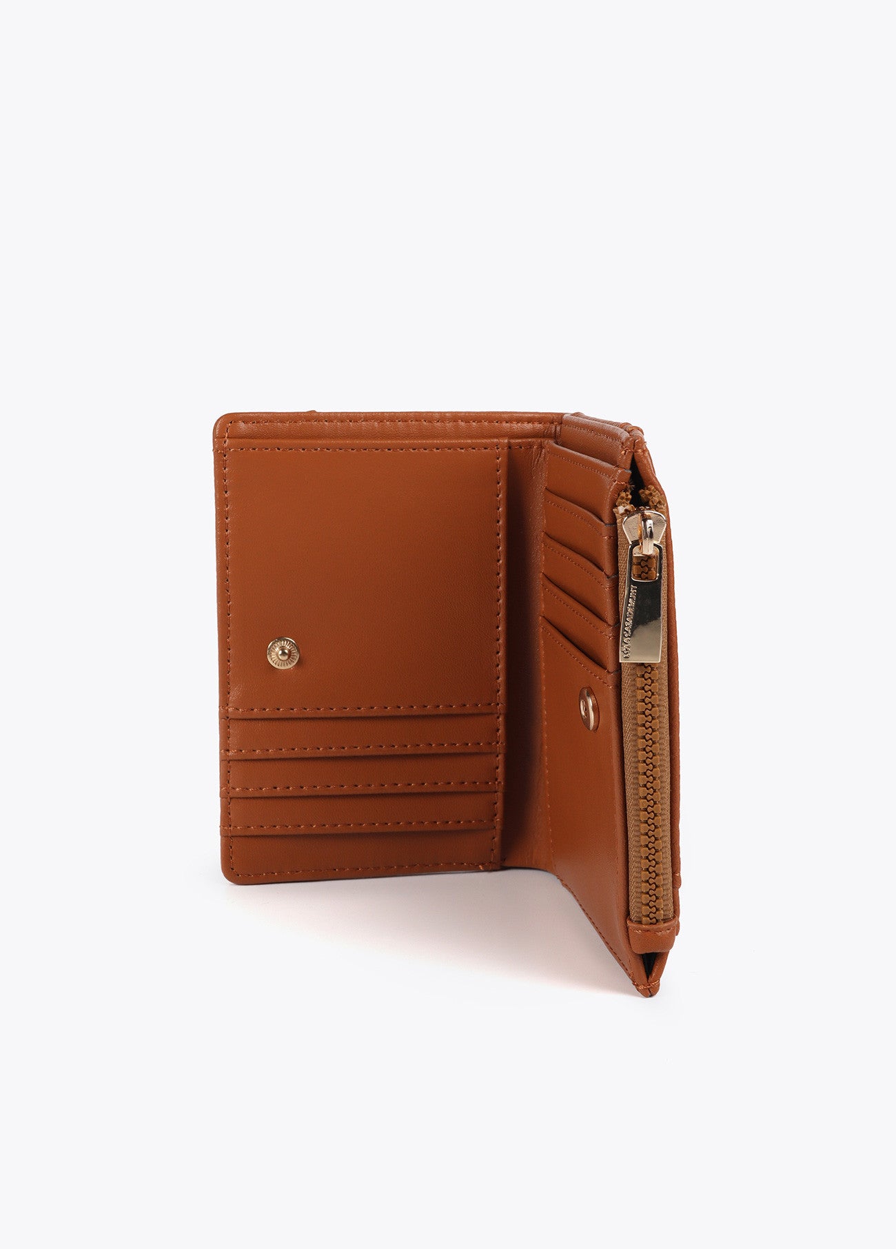 Monedero compacto con diseño de monograma en relieve rombos. Elegante cierre metálico, múltiples compartimentos para tarjetas y cremallera para monedas. Diseñado en material premium y con logotipo distintivo.