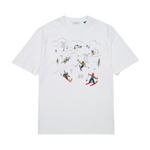 Camiseta blanca de manga corta, fabricada con algodón 100% orgánico. Diseñada con un corte relajado y una longitud perfecta. Presenta una ilustración especial "Peak 7" en la parte frontal que muestra una estación de ski. Fabricada en Portugal.