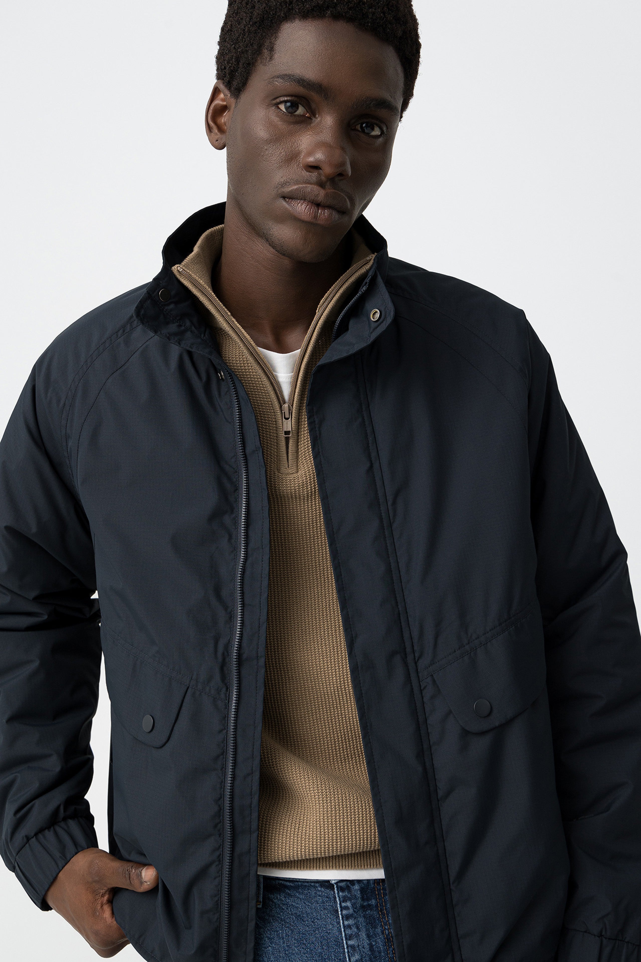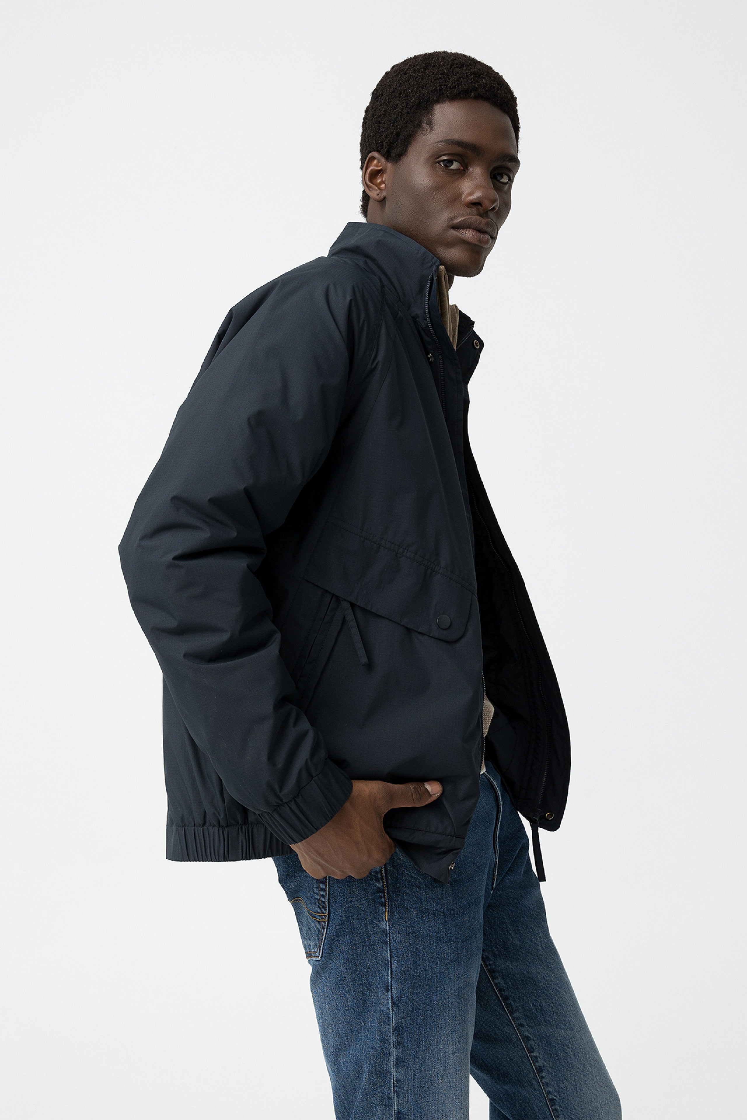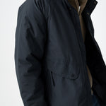 Chaqueta azul marino oscuro de estilo urbano y diseño limpio, pensada para el día a día y para el entretiempo. Su corte recto y ligero permite combinarla con facilidad y ofrece comodidad sin perder estética. La capucha y los bolsillos frontales aportan practicidad y un uso versátil en diferentes situaciones.