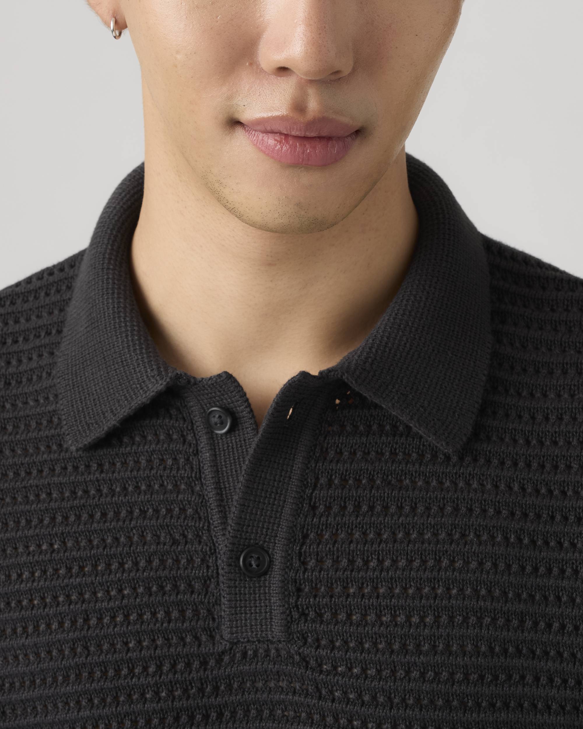 Lo interesante de este modelo está en cómo desplaza el polo hacia un terreno más relajado. No busca una imagen excesivamente clásica, sino una interpretación más actual, más blanda y más natural en su forma de caer.