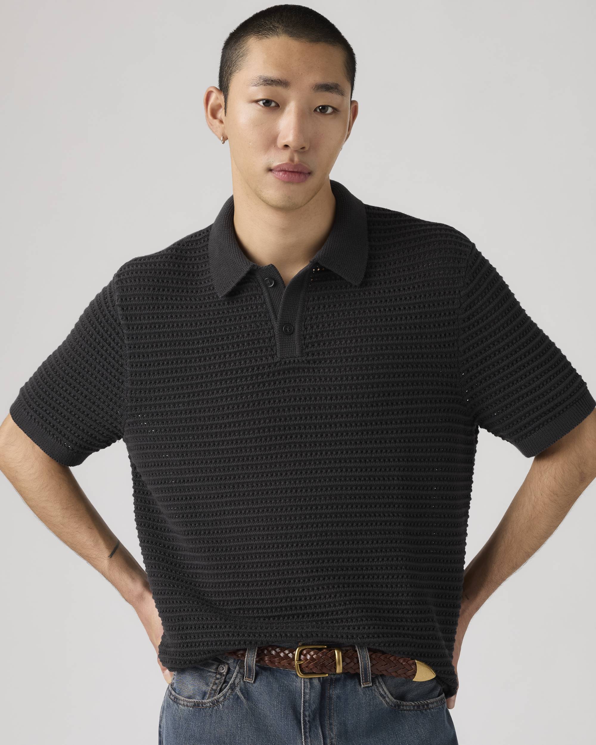 El Laguna Sweater Polo de Levi’s es un polo de punto de manga corta con una lectura más relajada y contemporánea que la de un polo clásico. Mantiene la estructura reconocible del cuello de polo, pero la traslada a una prenda más suave y cómoda para el día a día.