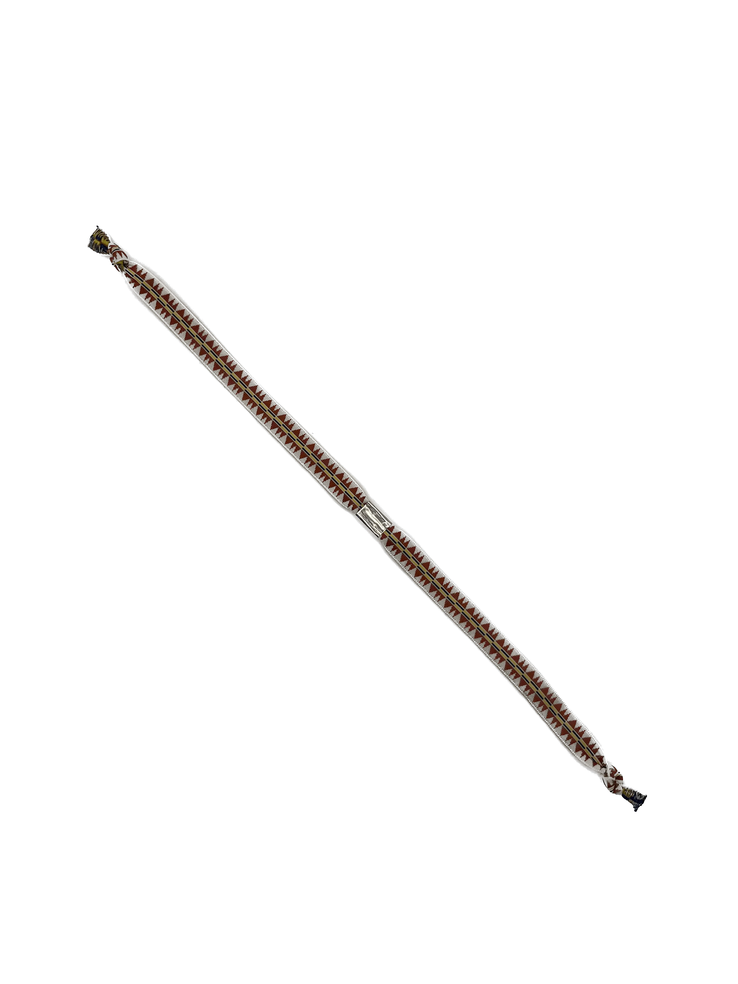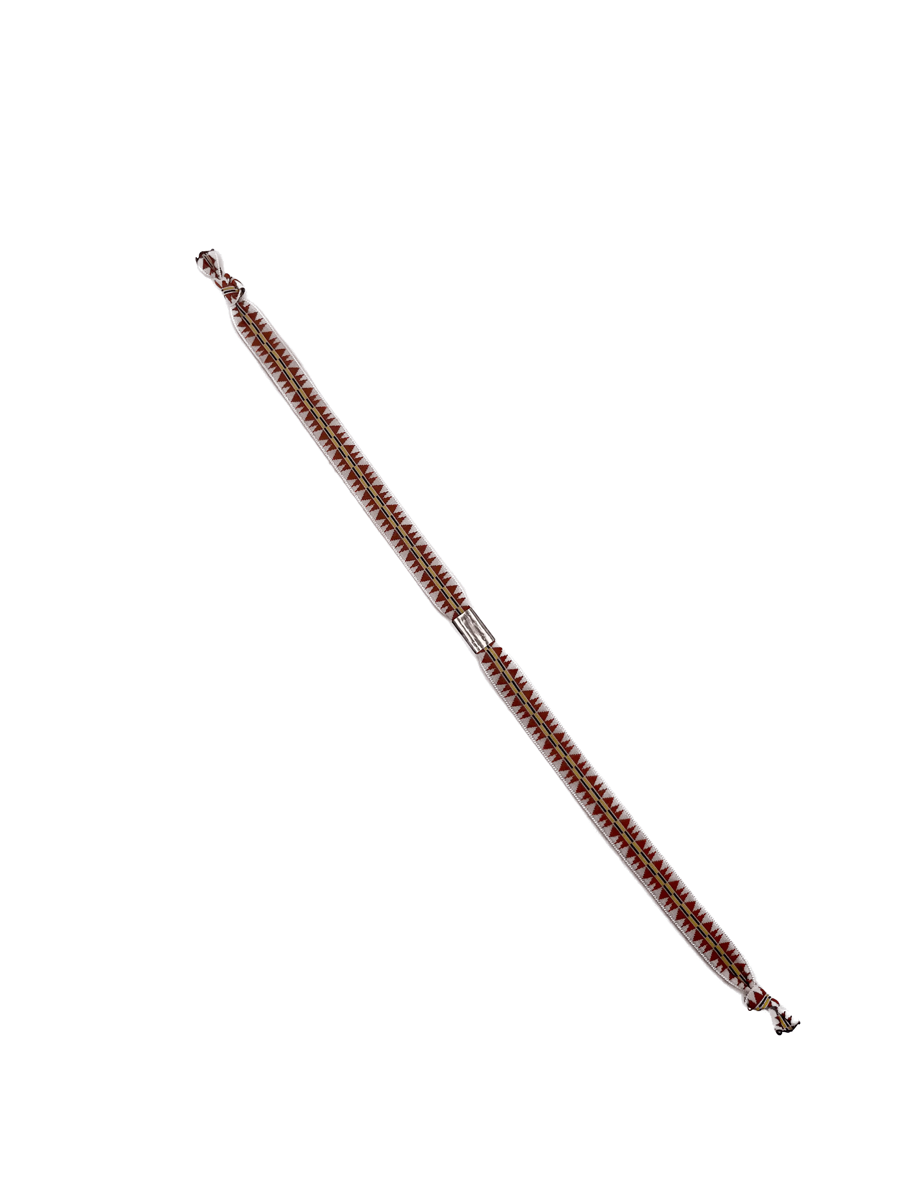 Eleva tu look al siguiente nivel con la Pulsera de Tela Domingo Ayala. Esta pulsera única está hecha de tela y cuenta con un estampado exclusivo.