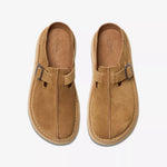 La parte superior y el forro en ante premium cola están pensados para poder usarse incluso descalzo, ofreciendo un tacto suave y natural. Su perfil sin cordones facilita el calce rápido y cómodo, ideal tanto para momentos de descanso en casa como para el día a día fuera.