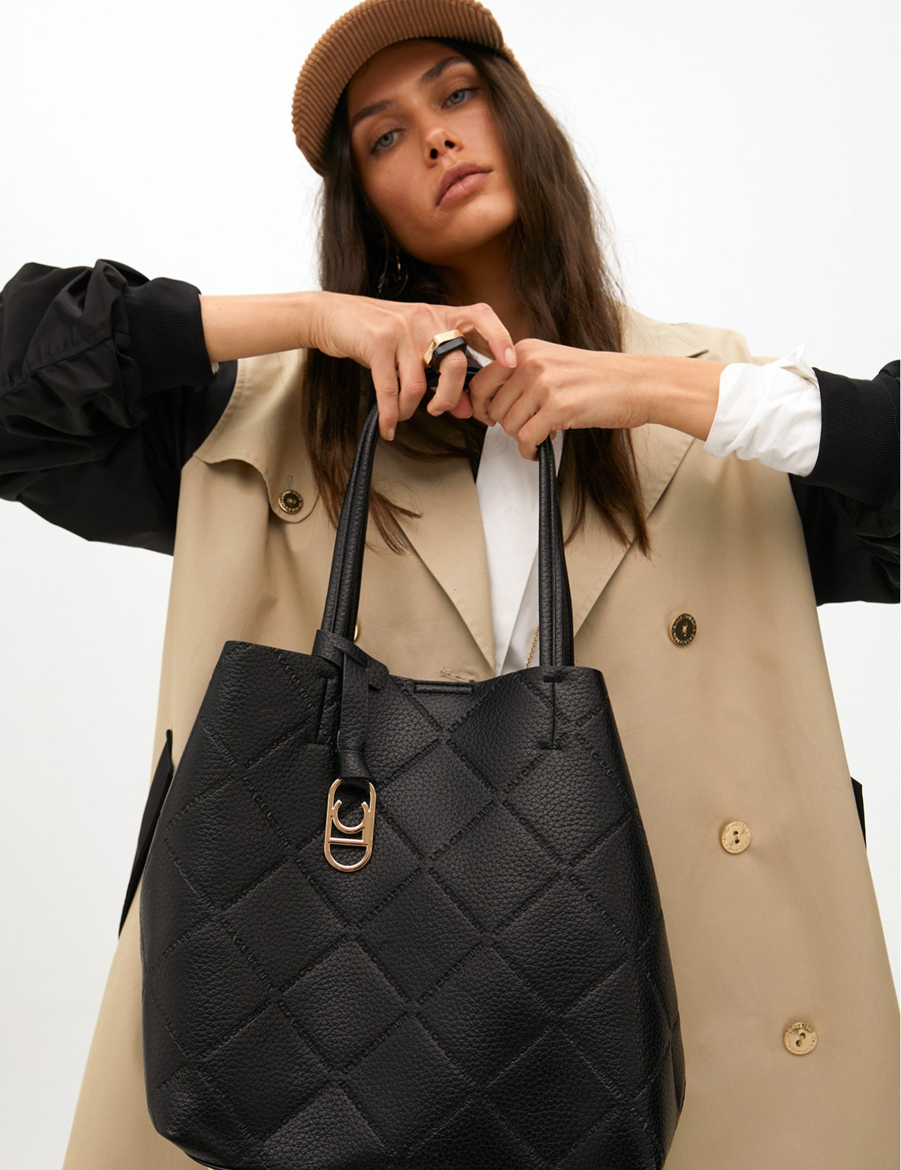 Bolso LOLA CASADEMUNT Shopper Monograma Rombos con Logo Negro