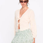 Esta blusa destaca por su simplicidad bien resuelta, lo que la convierte en una prenda fácil de usar en distintos contextos.