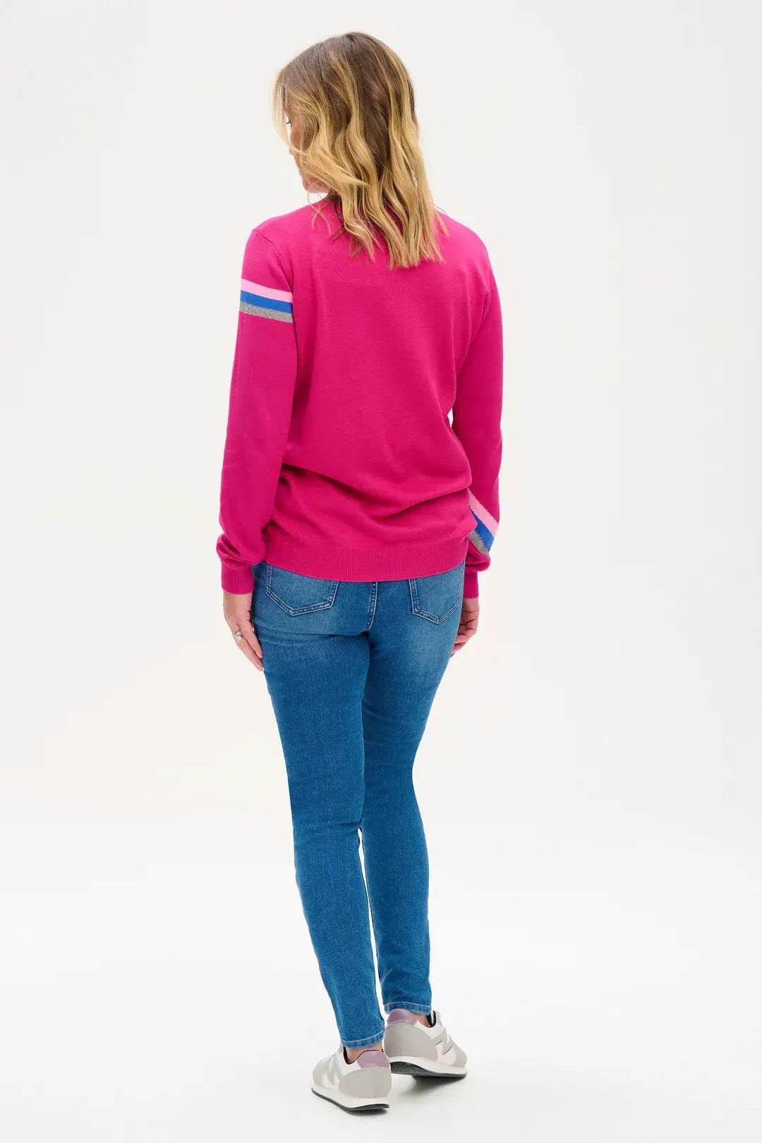 Nos encanta este jersey combinado con unos vaqueros, una gabardina y botas para un divertido estilo otoñal.