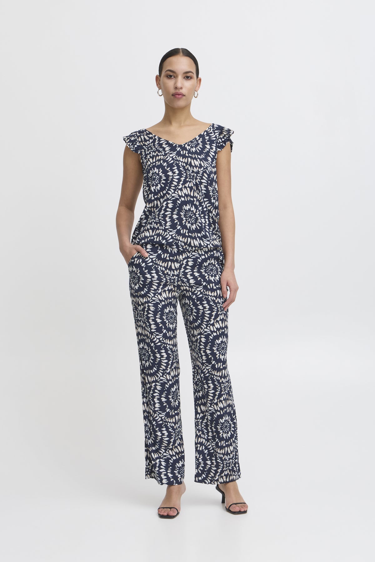 ¡Estos pantalones ICHI Aya Total Eclipse Ikat te ofrecen el mejor estilo y comodidad! Con su composición de 97% de viscosa y 3% de elastano, se adaptan perfectamente a tu cuerpo. Además, su corte regular y cintura elástica te brindan un ajuste cómodo, mientras que su longitud larga y pierna ancha te hacen lucir elegante y a la moda. ¡Un imprescindible en tu guardarropa!