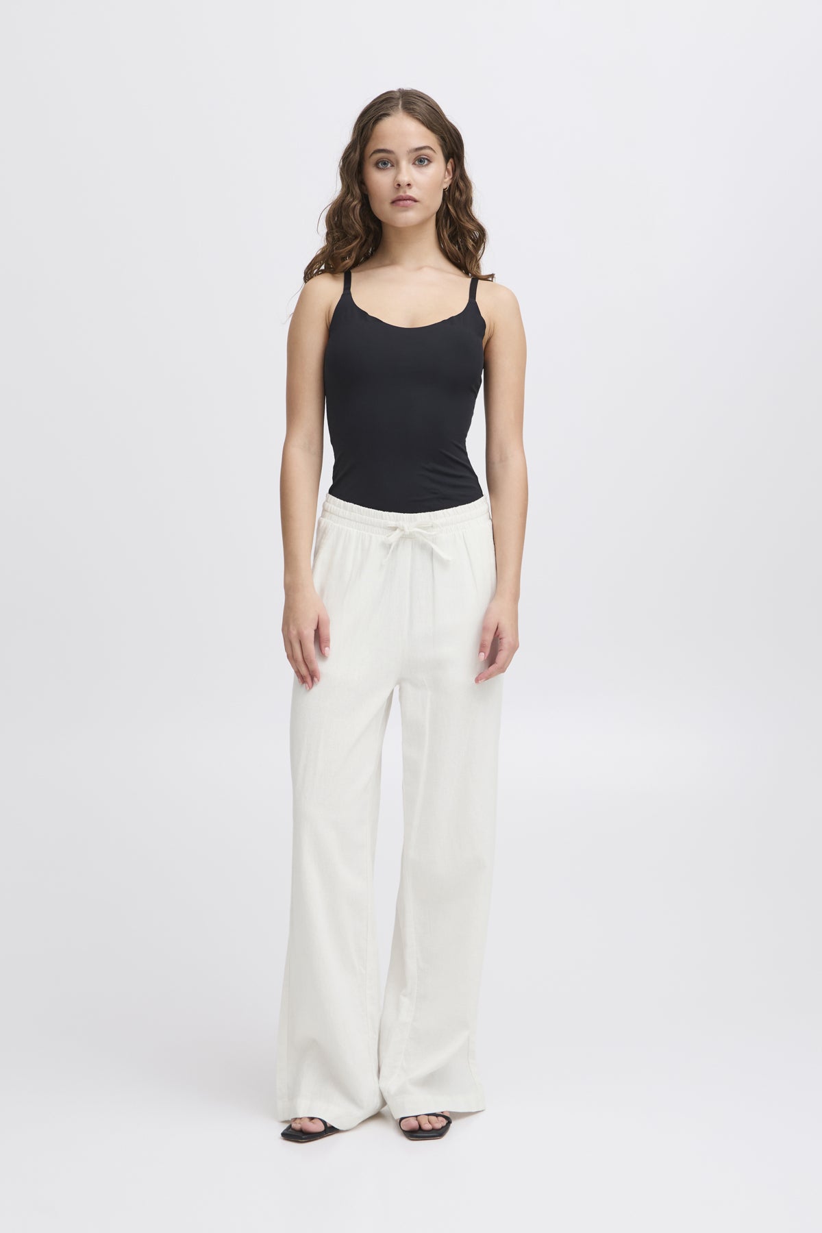 Estos Pantalones ICHI Linno Cloud Dancer te ofrecen un corte holgado que te brinda comodidad y libertad de movimiento. Su cintura elástica se adapta a tu cuerpo y su tejido de lino y viscosa te ofrece frescura y suavidad. Perfecto para un estilo casual y relajado. Modelo: 20122911.