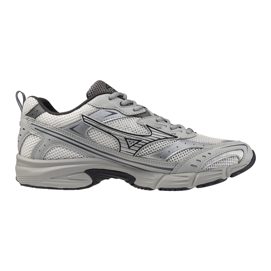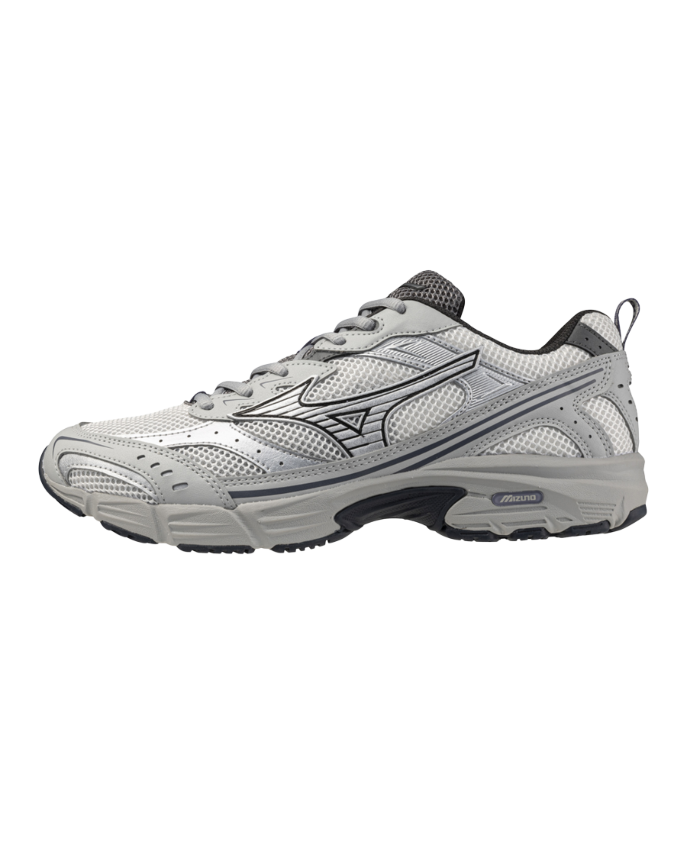 La MXR refleja nuestro deseo de difundir la experiencia del retrorunning de Mizuno 2000s, como una extensión de la mundialmente reconocida Wave Rider 10. El nombre MXR proviene de la línea Maximizer, una línea de running que se ha ofrecido durante años en nuestro mercado nacional para ofrecer la calidad Mizuno a un amplio público. La MXR es una silueta de nivel de entrada, pero se mantiene fiel a la esencia de Mizuno, con un alto nivel de calidad y tecnicidad. Una atención especial al nuevo utillaje, con un alto nivel de detalles y múltiples piezas de goma que permiten bloqueos de color técnicos. Esta iteración utiliza una auténtica combinación de materiales, con superposiciones plateadas y malla Air blanca. La zapatilla está repleta de detalles: impresiones en los ojales, cuartas partes en relieve y cintas personalizadas.