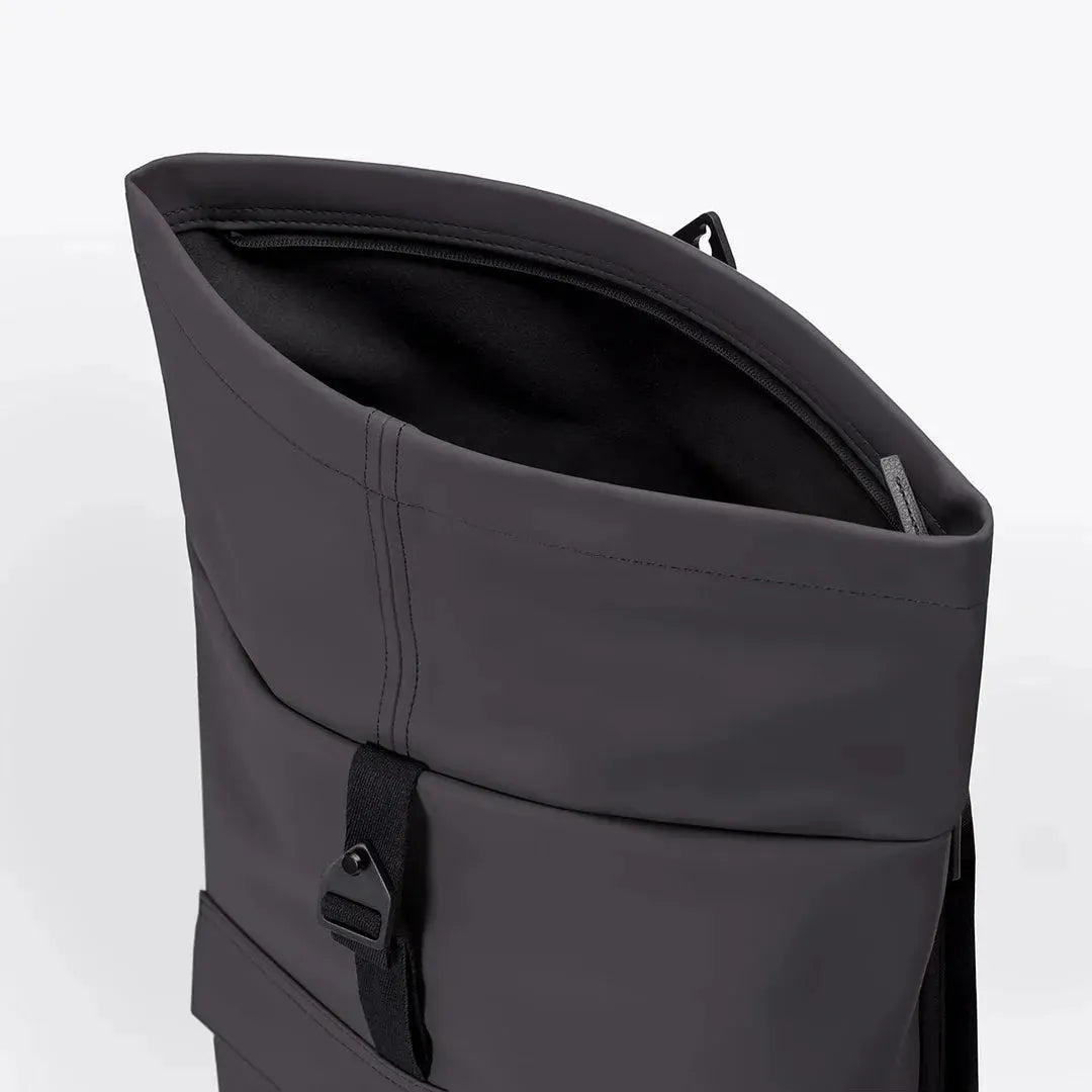 Mochila de día minimalista, ya sea de viaje en bicicleta, de compras o en la vida nocturna. La tapa enrollable se cierra con una hebilla metálica y permite un práctico llenado de la mochila Jasper.