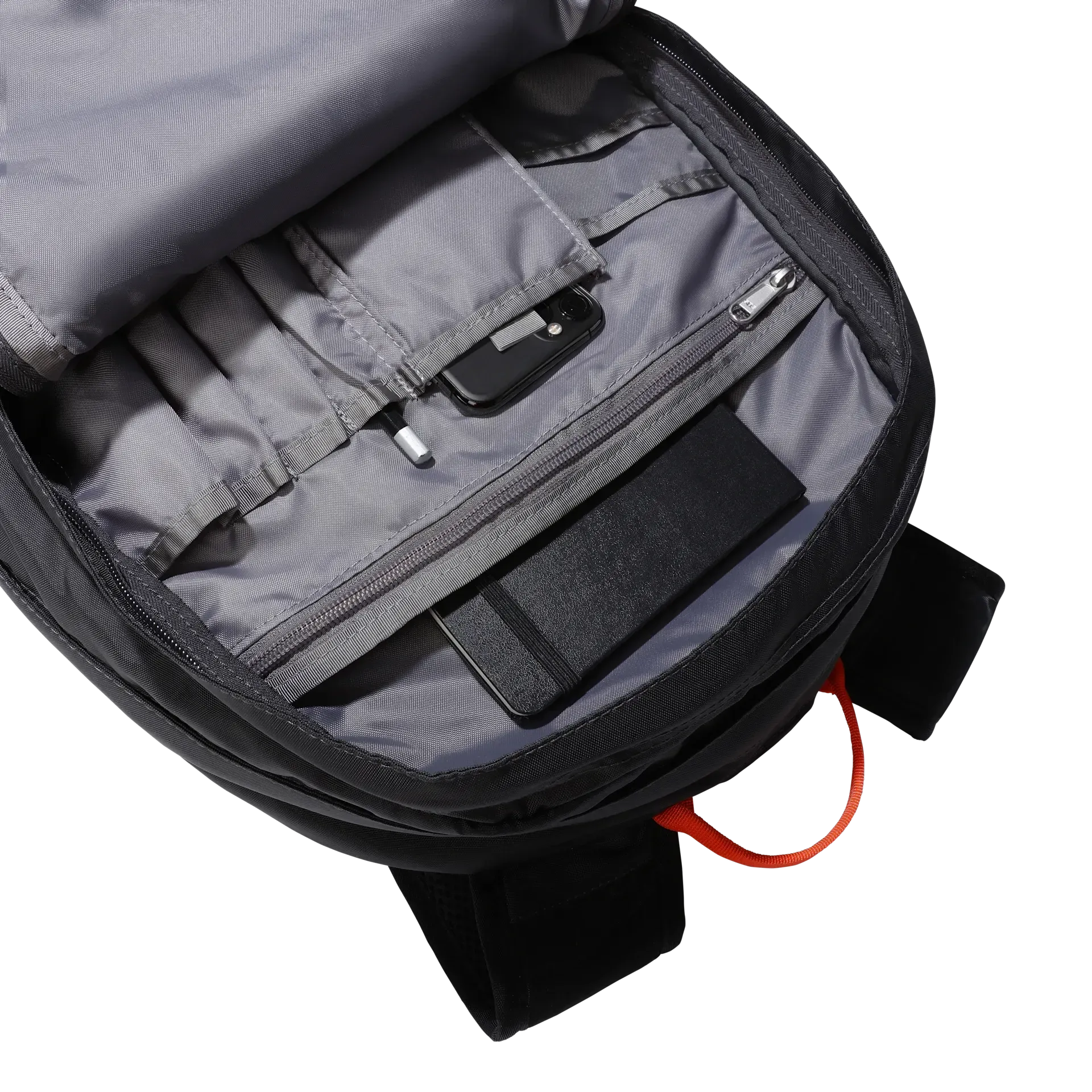 Compartimento principal grande con bolsillos de organización en el interior, funda para un portátil de 15" y puerto para llevar un sistema de hidratación