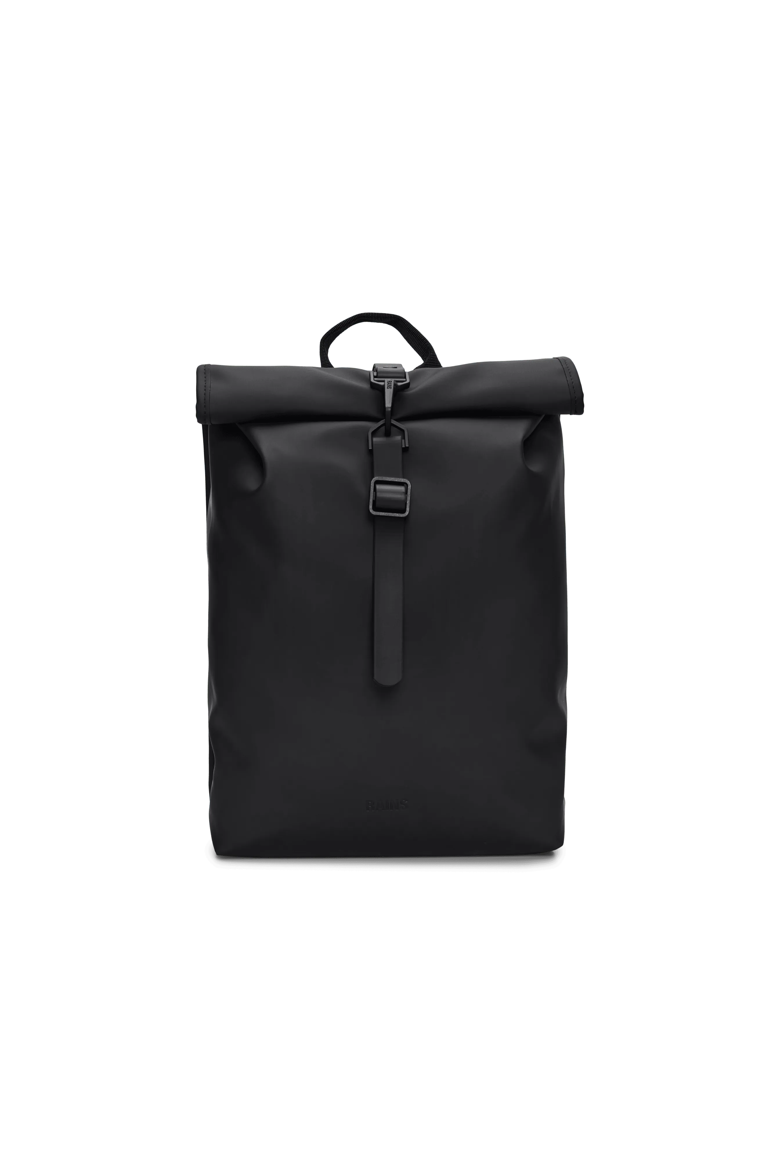 La minimochila Rolltop está confeccionada en el tejido de poliuretano impermeable característico de Rains y diseñada para ofrecer resistencia, durabilidad y un suave acabado.