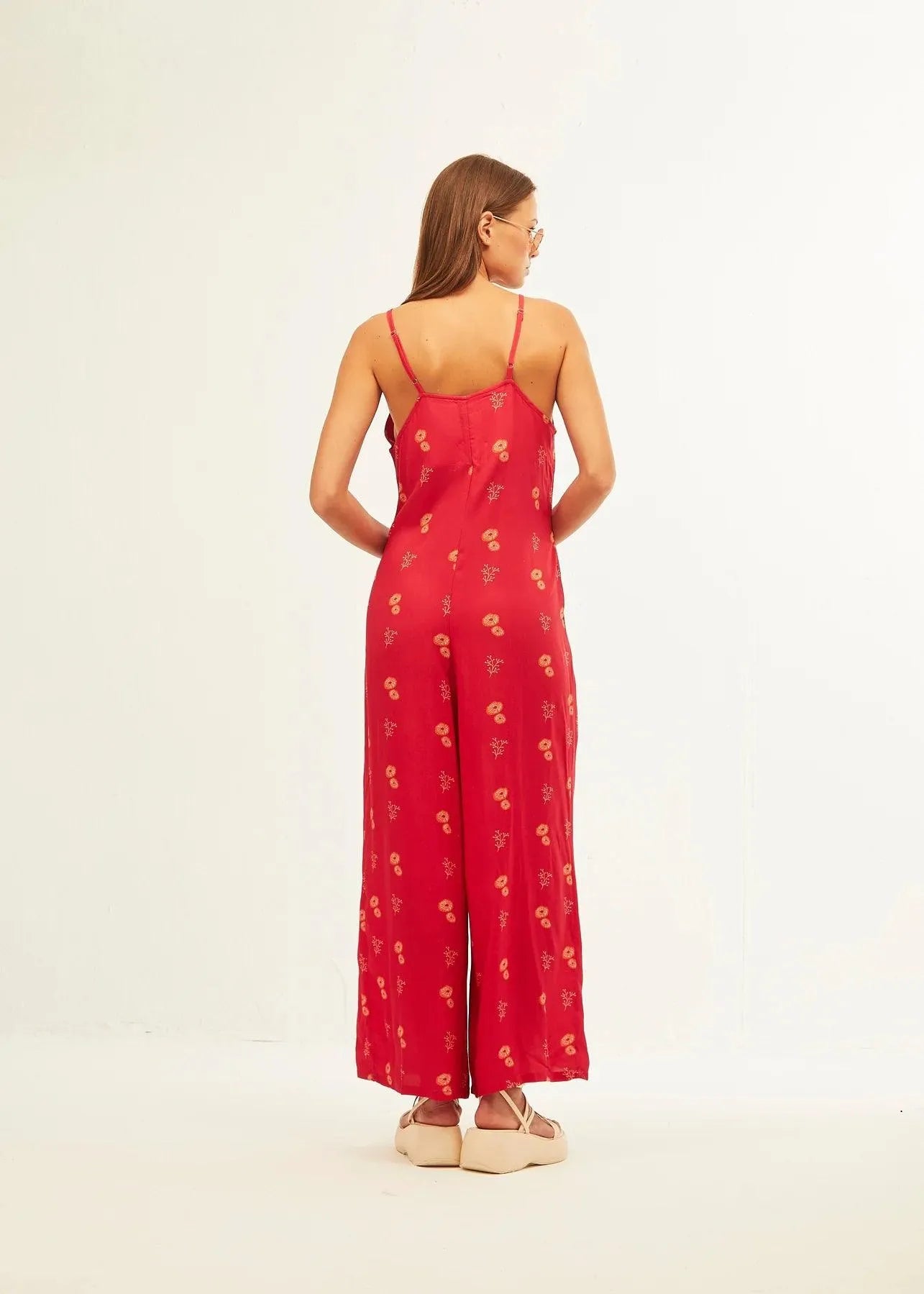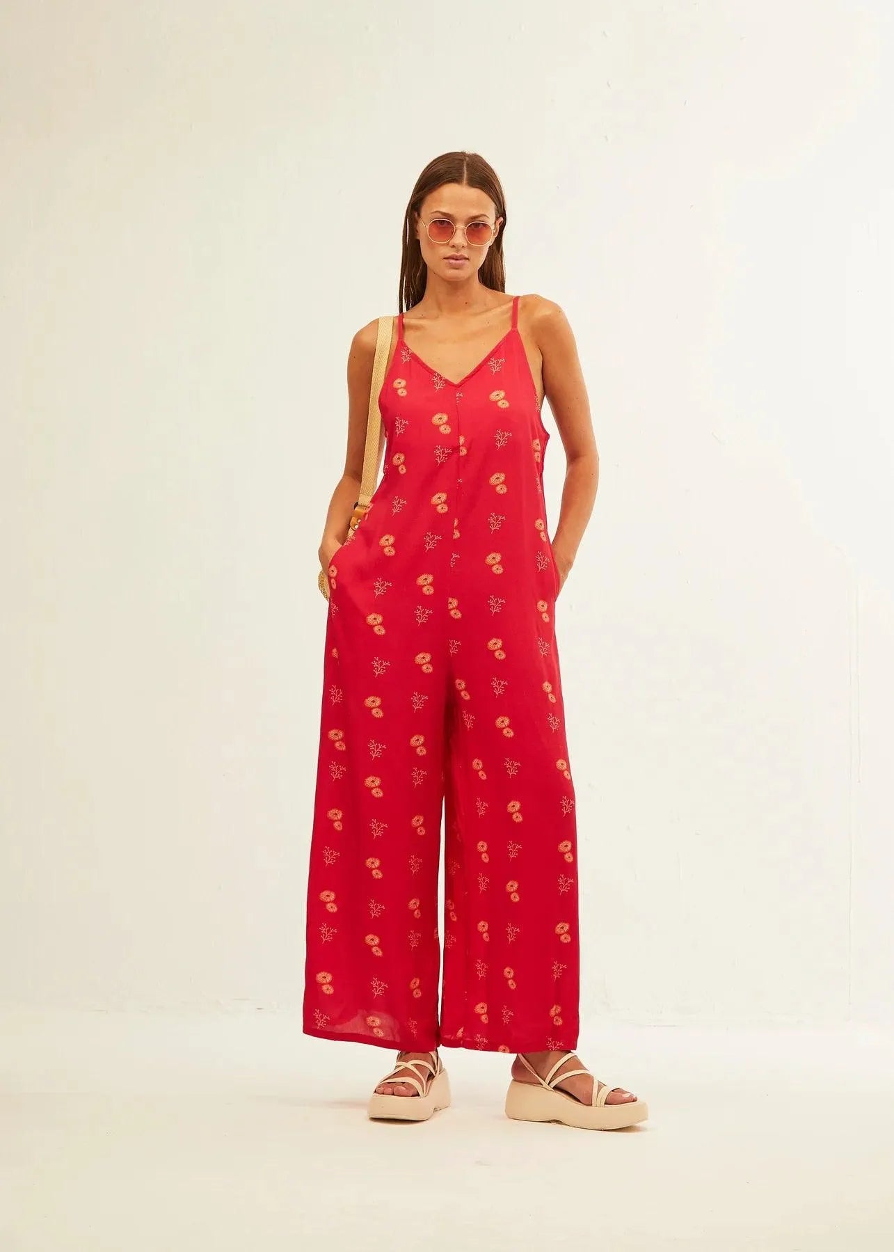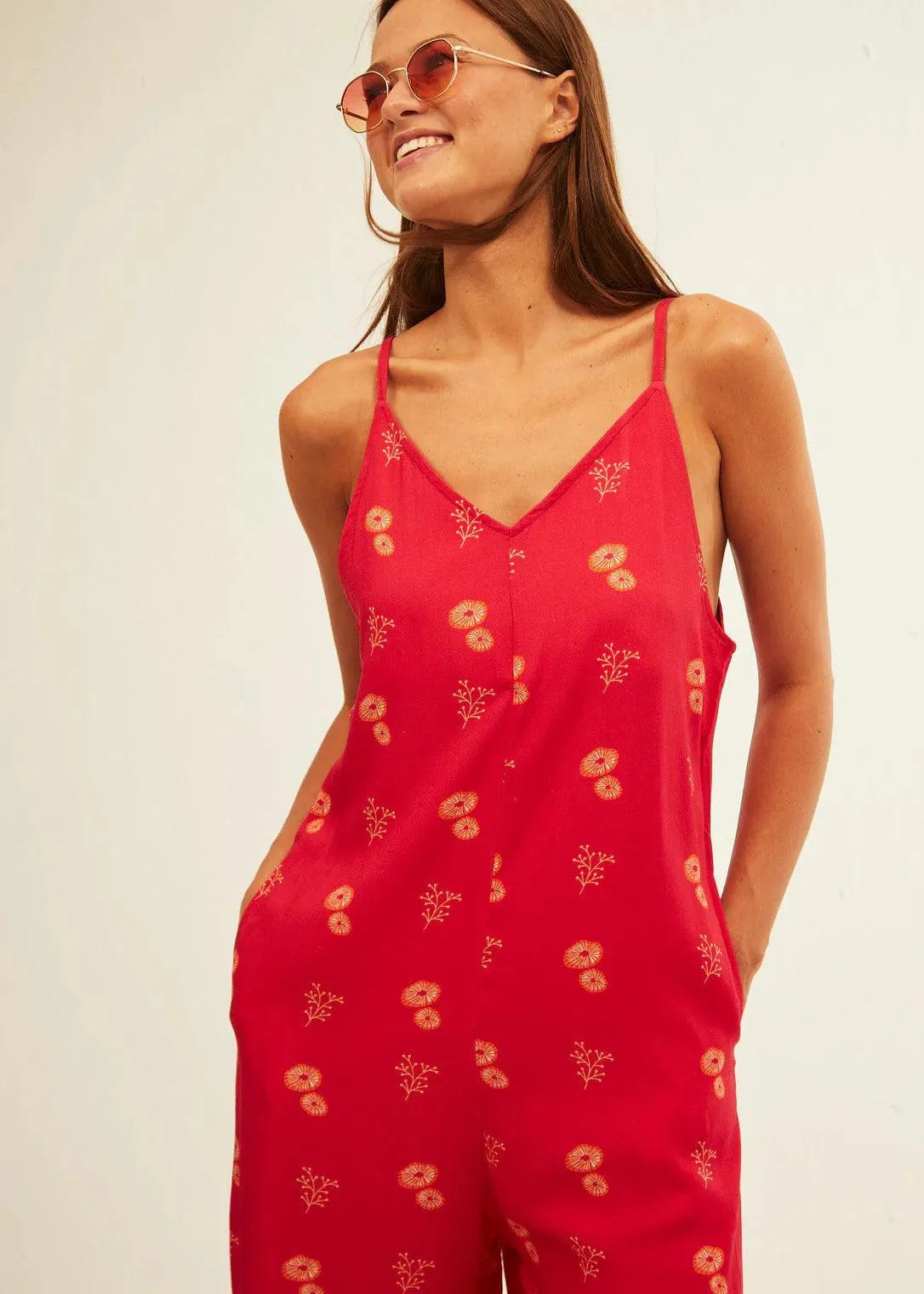 Mono largo en estampado Garnet Citrus. Escote en V con tirantes. Composición: Rayón 100%.