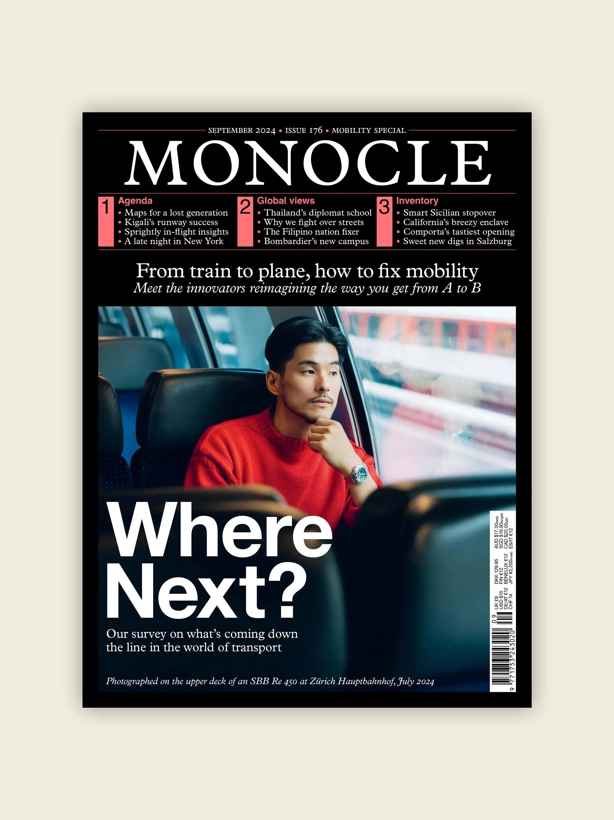 A medida que el verano se aleja por el retrovisor y cambiamos de marcha en otoño, la encuesta especial sobre movilidad de Monocle aparece en el horizonte, y con ella, toda una serie de sorpresas. Conozca las bicicletas de carga que revolucionan la escena ciclista, los microcoches que circulan por nuestras ciudades y la empresa aeroespacial que apuesta por un aspecto más ligero en la fábrica. Le haremos reflexionar sobre el futuro del automóvil y del avión, y le haremos replantearse su navegador por satélite. Además: ¡todos a bordo del Monocle Express!