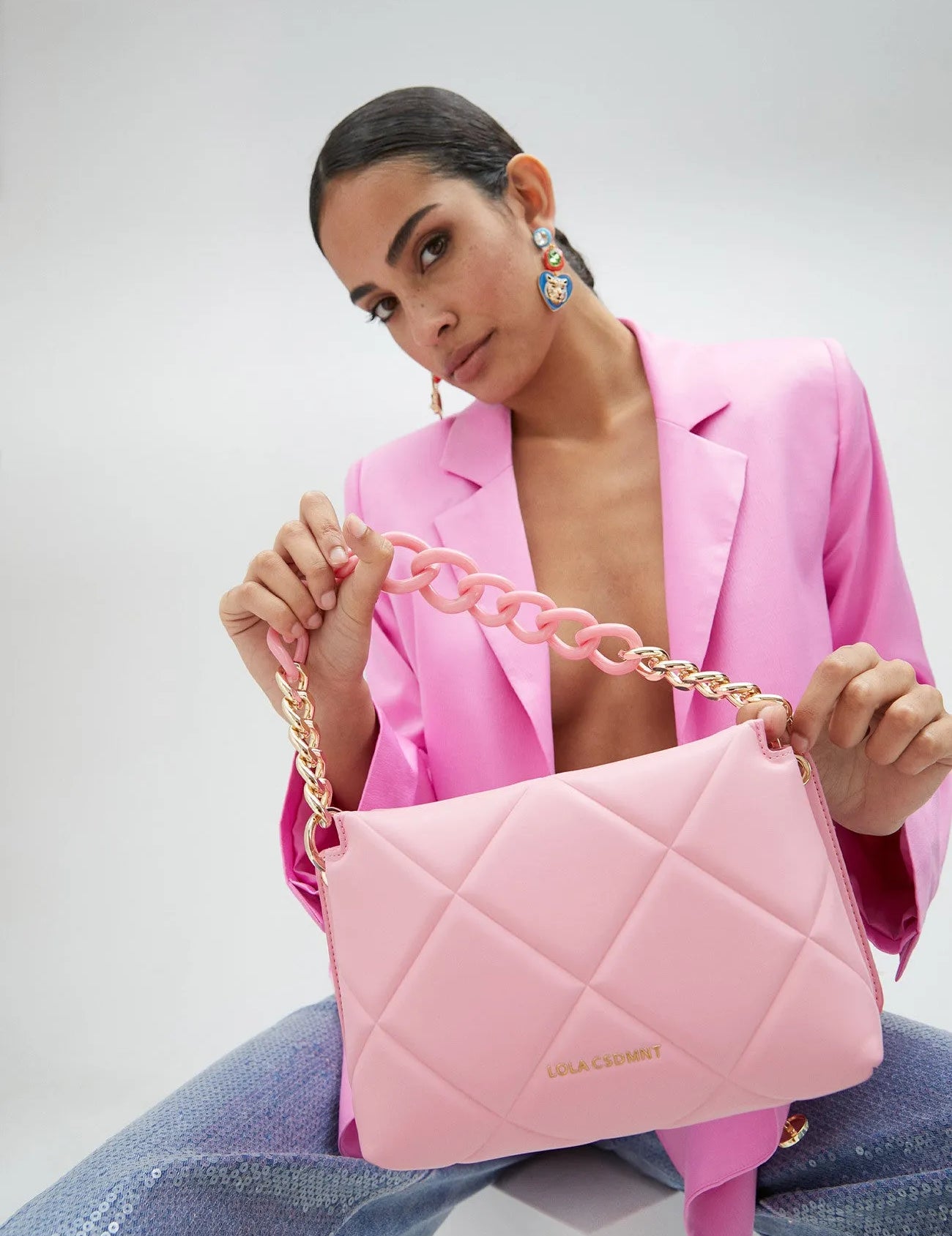 Bolso LOLA CASADEMUNT Bandolera Rejilla Rosa