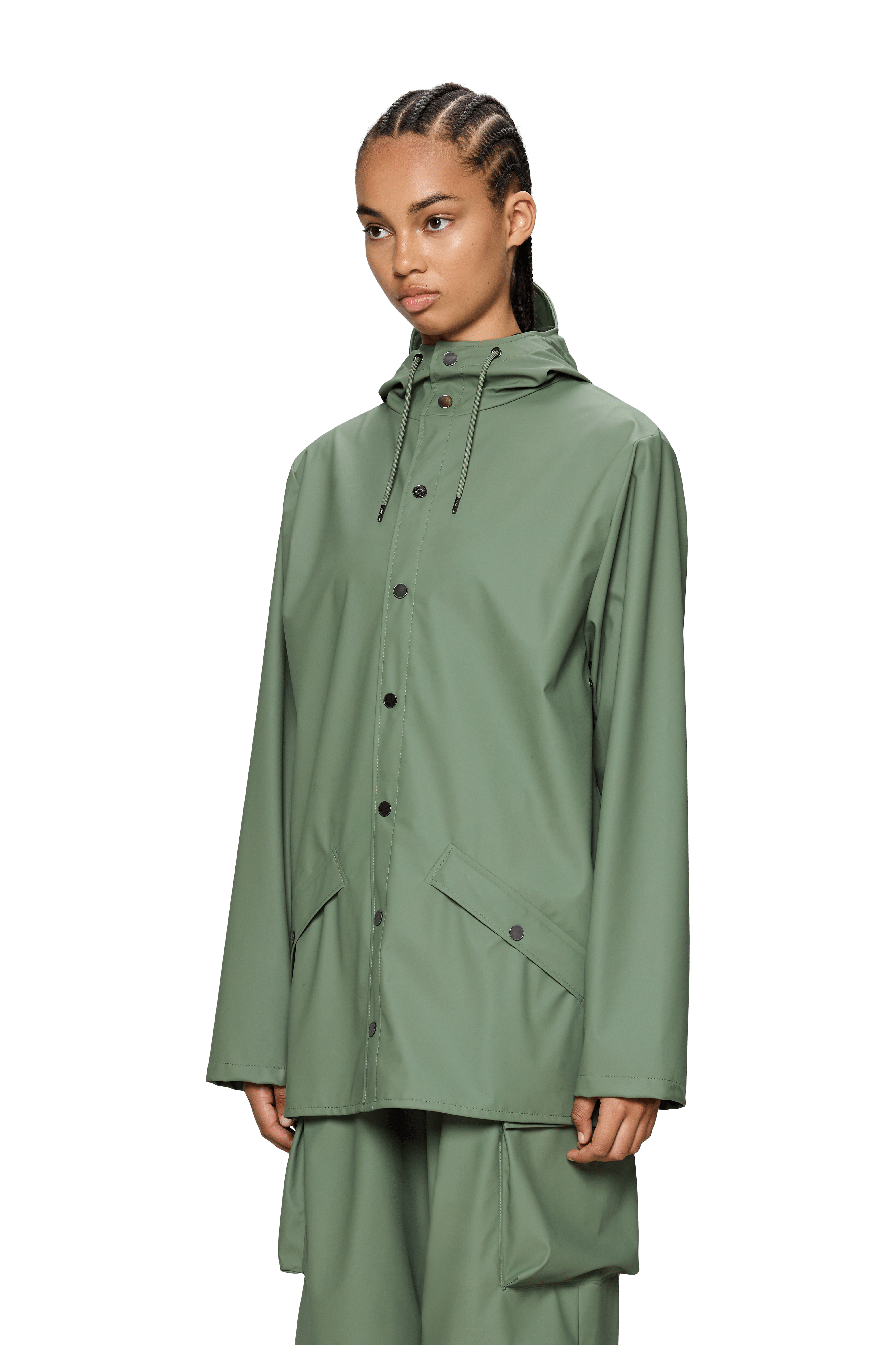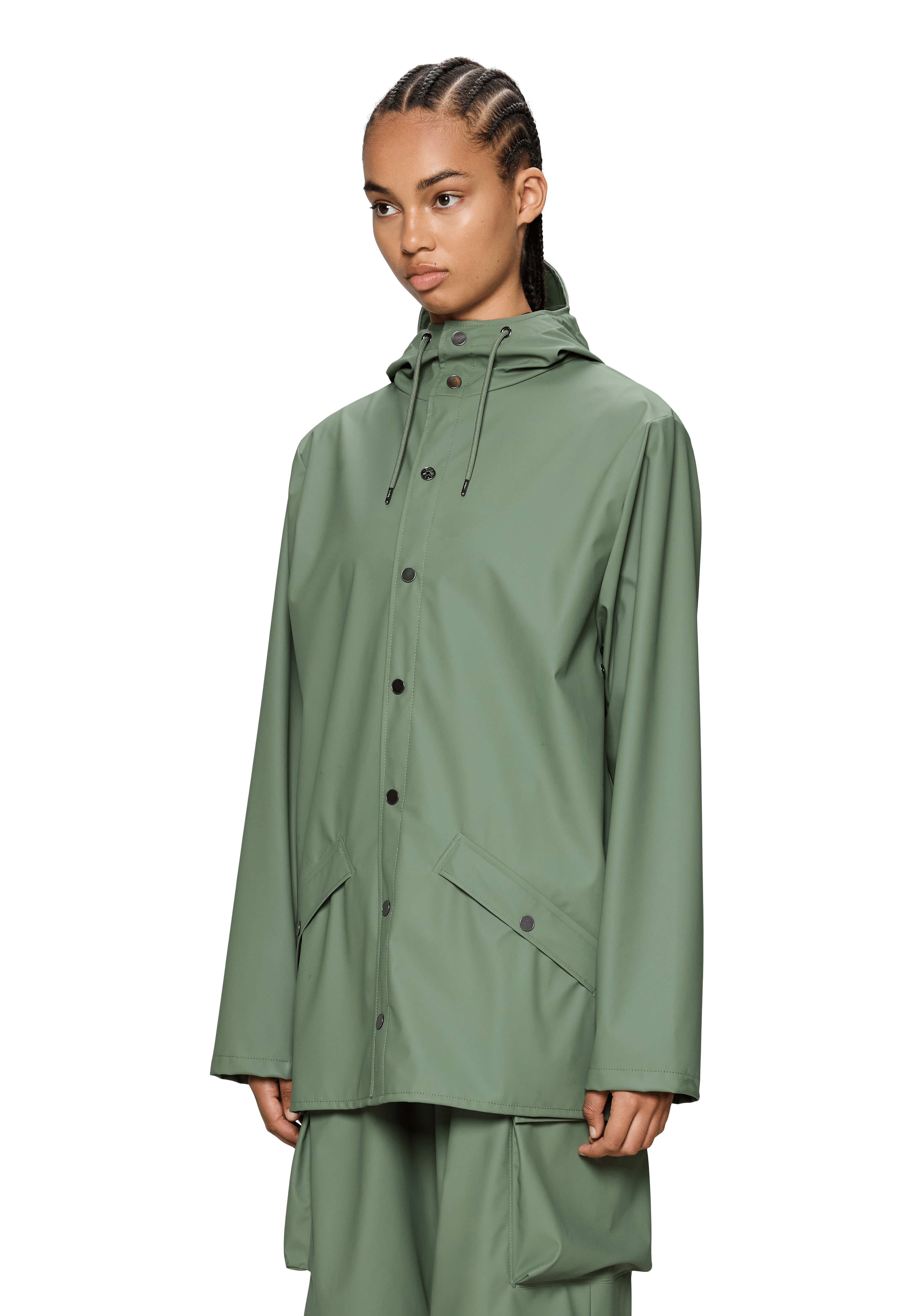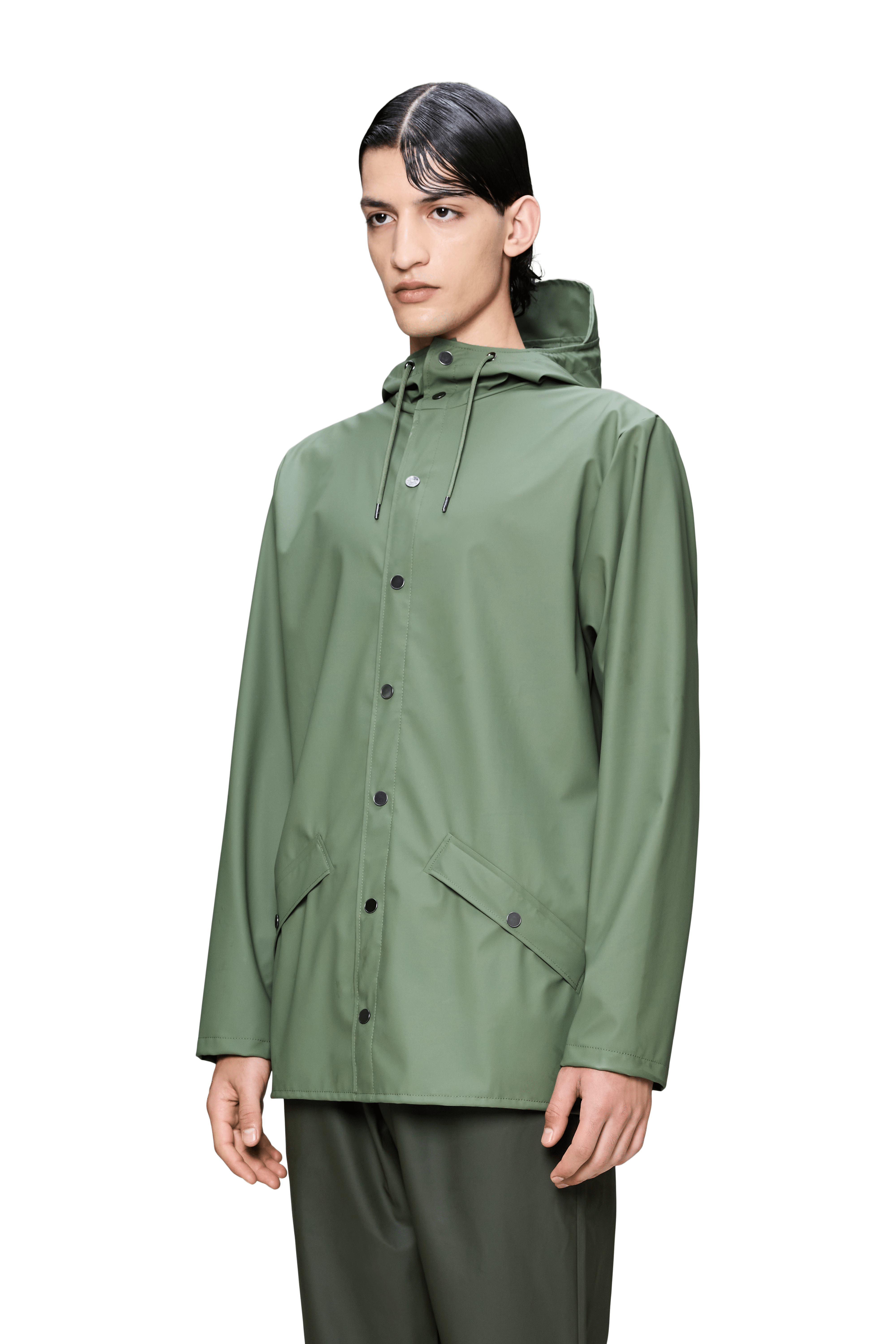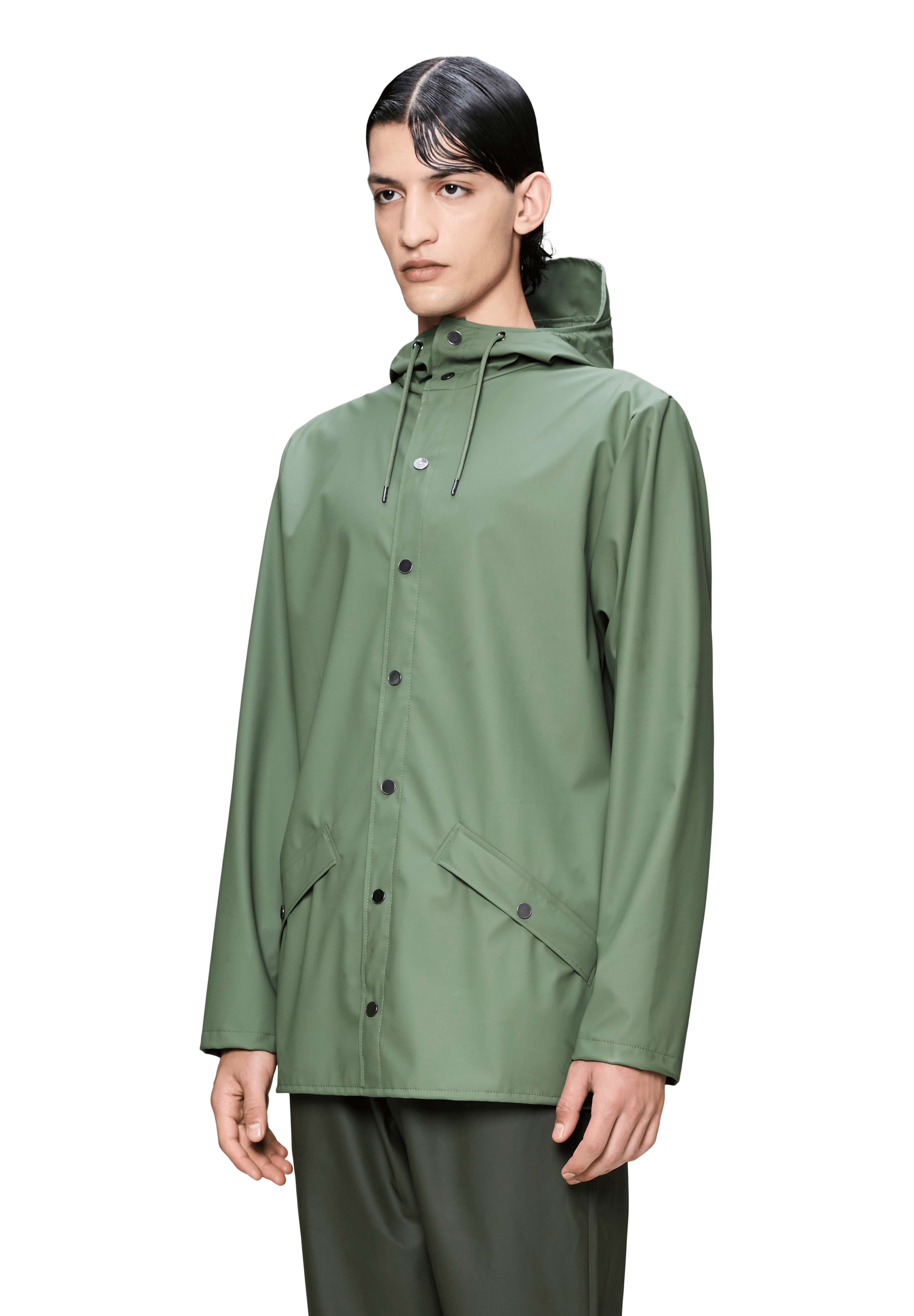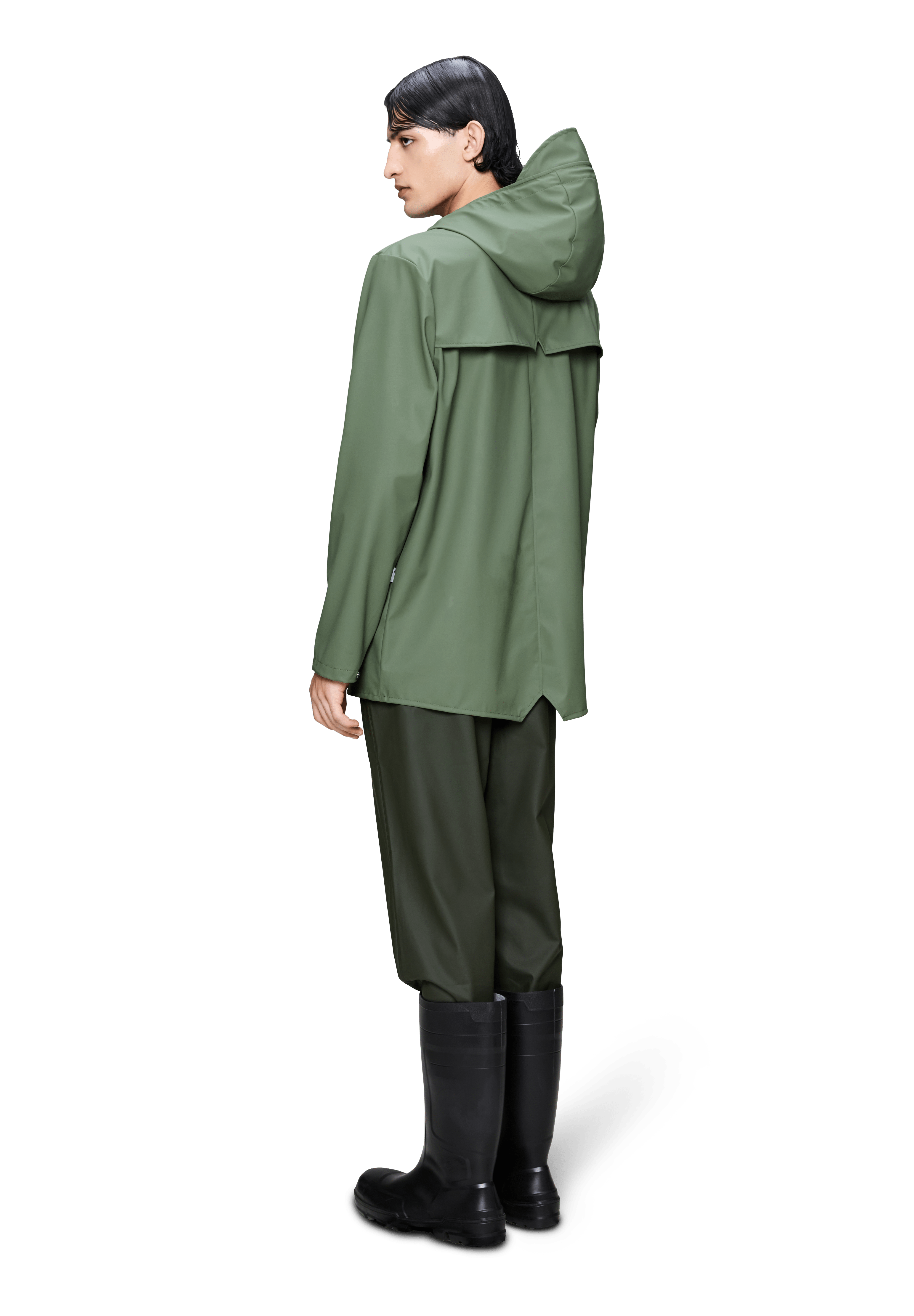 Jacket es una chaqueta impermeable unisex de corte regular y estética minimalista, pensada para el día a día en ciudad. Un básico de PU con costuras selladas que combina protección y una caída elegante.