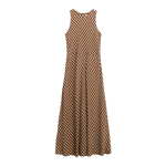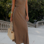 El vestido de tirantes Breda reinterpreta una silueta clásica con un patrón de cuadros que enfatiza la estructura y el ritmo visual de la pieza. Su línea recta y corte sencillo hacen de esta prenda una base versátil en el armario, capaz de funcionar tanto de manera independiente como en combinación con capas superiores más elaboradas. El escote ligeramente abierto y los tirantes finos equilibran la longitud, generando una presencia que no resulta pesada a pesar de su caída.