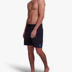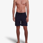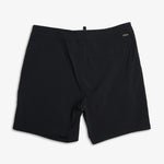 Boardshort de 17 pulgadas de pierna y cintura fija con bolsillo trasero de ojal con cierre de cremallera Aquaseal, cordón de ajuste en la cintura, etiqueta tejida con la marca en el dobladillo delantero, tejido de nailon y elastano resistente al agua con un lavado en prenda.