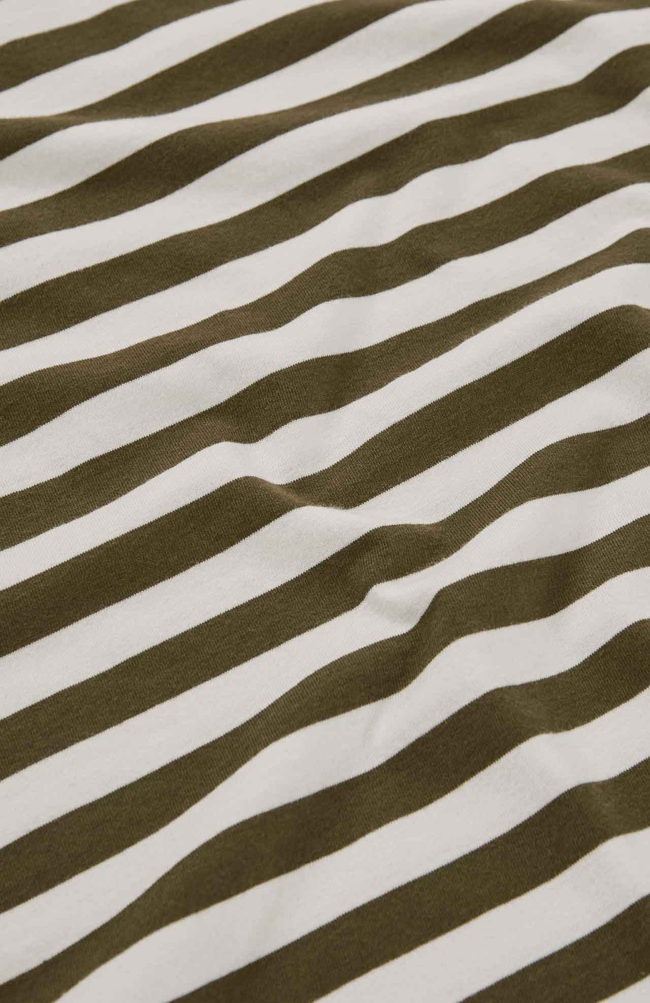 Camiseta de rayas confeccionada en algodón orgánico, fit regular con cuello redondo terminado en rib y manga corta.