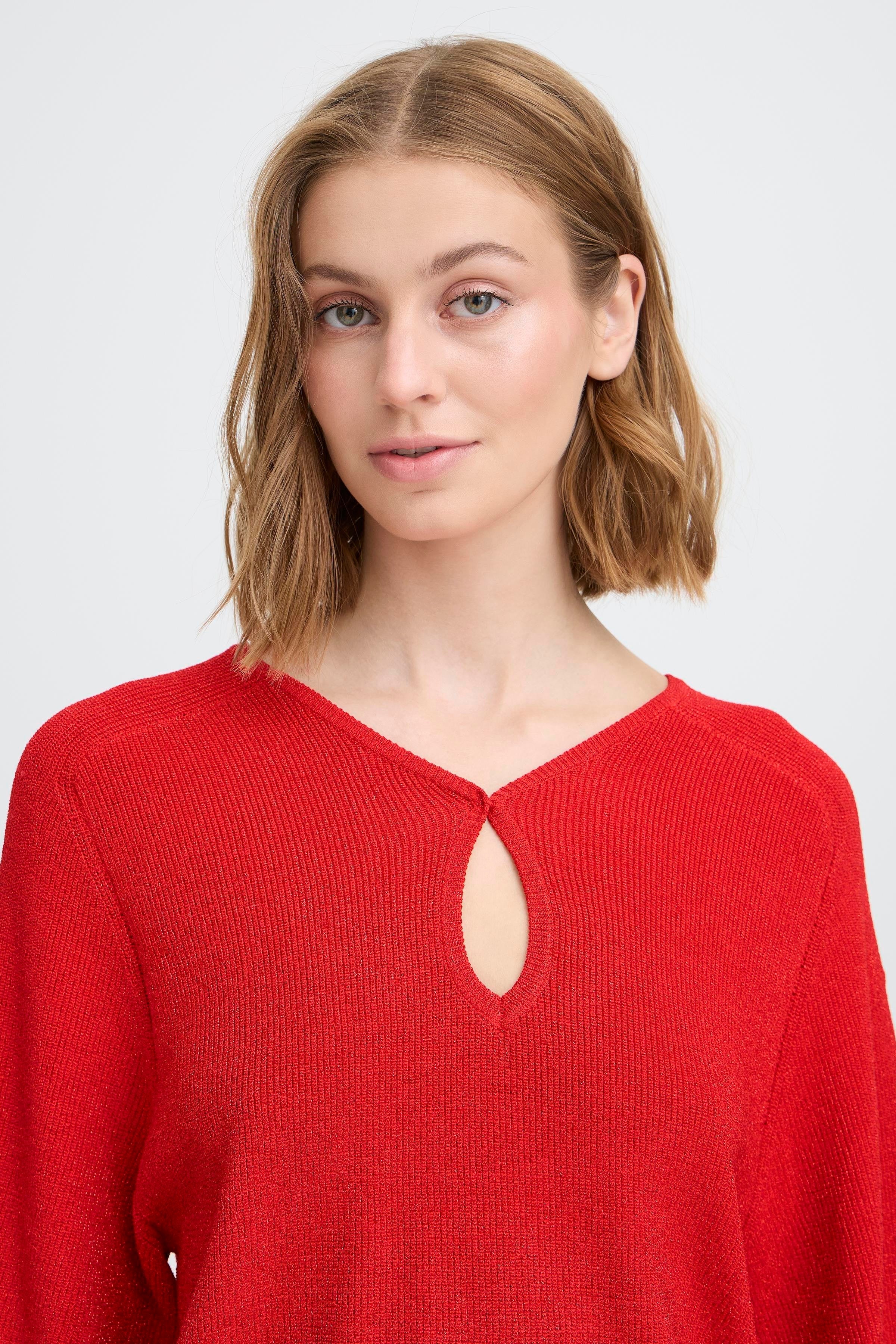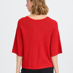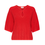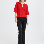 Top de punto con corte recto, mangas anchas hasta el codo y escote en V con abertura. El acabado suave y sutilmente texturizado añade un toque moderno a esta silueta versátil.