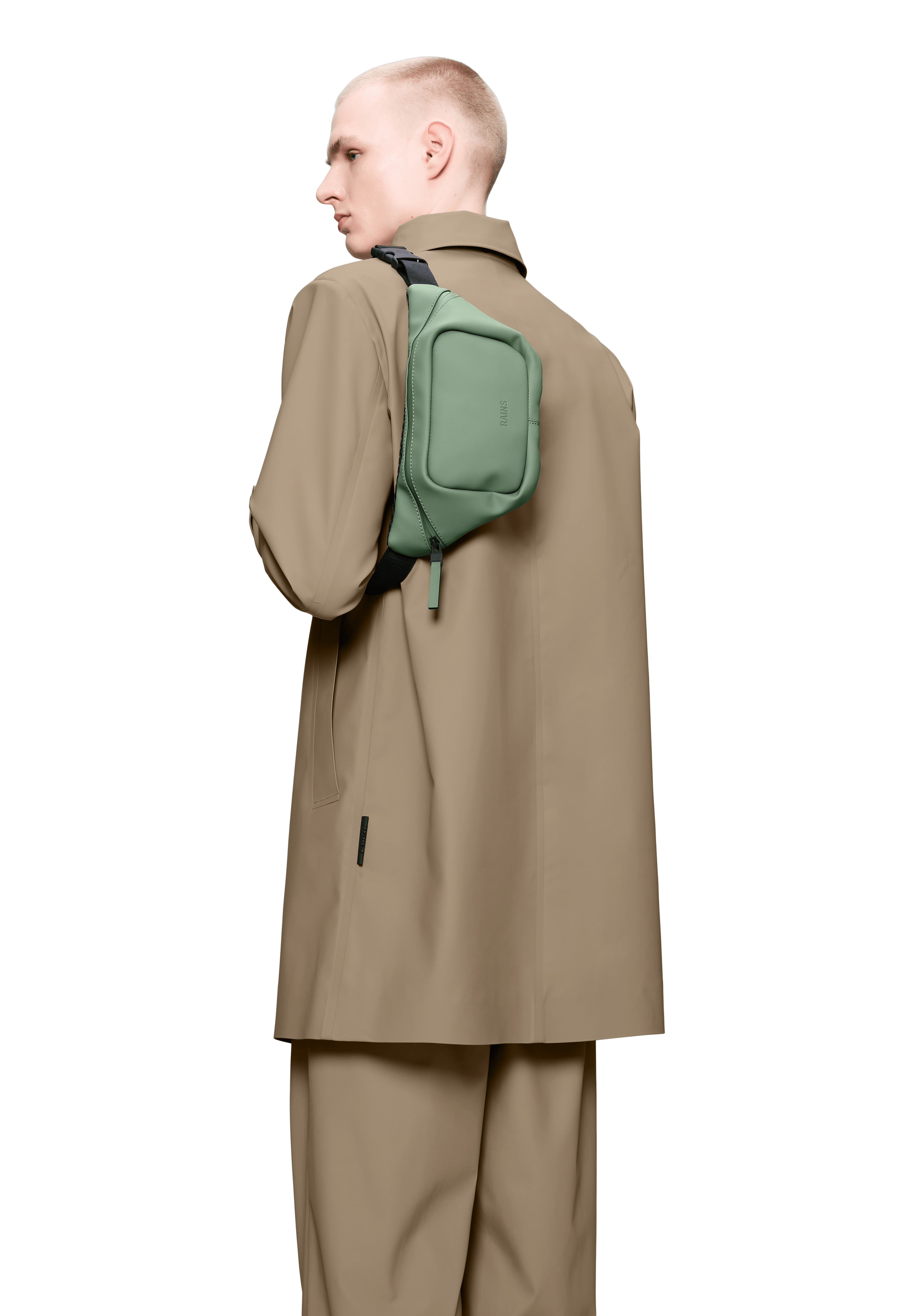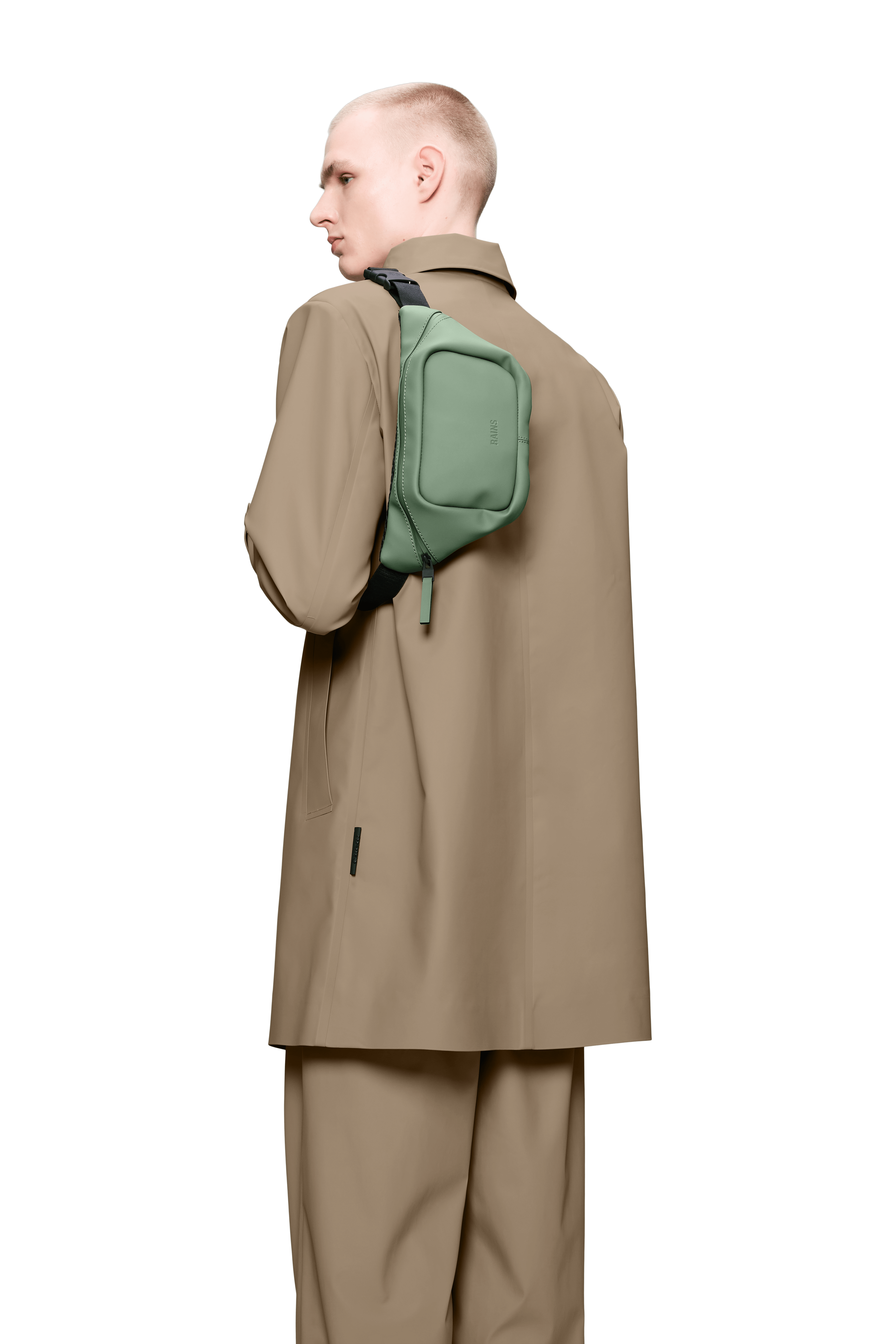 Las proporciones finas y discretas de la Bum Bag Mini la convierten en un accesorio imprescindible para los días ajetreados en la ciudad o para todos sus viajes. Con un diseño resistente e impermeable, su compacto compartimento principal ofrece mucho espacio para guardar objetos personales de forma segura. Se fija a una correa de cincha ajustable que puede llevarse colgada del hombro, cruzada o como cinturón, y se abrocha con una cómoda hebilla de apertura rápida. Destaca por el sutil logotipo en relieve de Rains.
