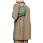 El diseño de la riñonera Bum Bag Mini está confeccionado en el tejido de poliuretano impermeable característico de Rains, creado para ofrecer resistencia en el transporte, durabilidad y un suave acabado.