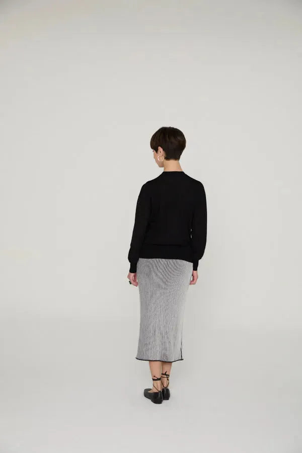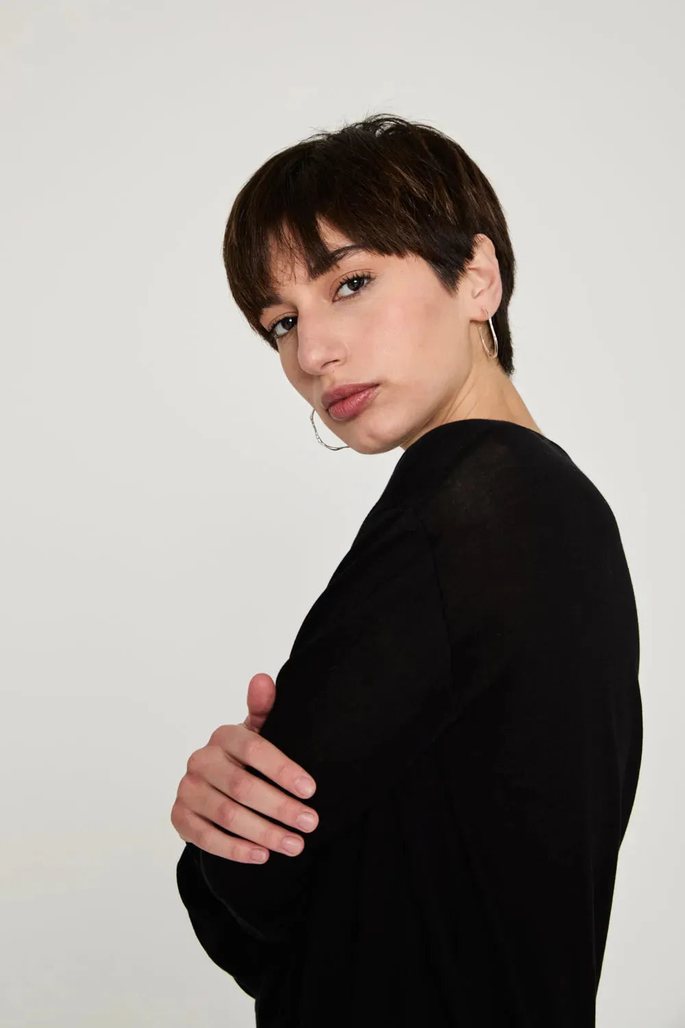Jersey de cuello redondo y manga larga. Acabados en rib.