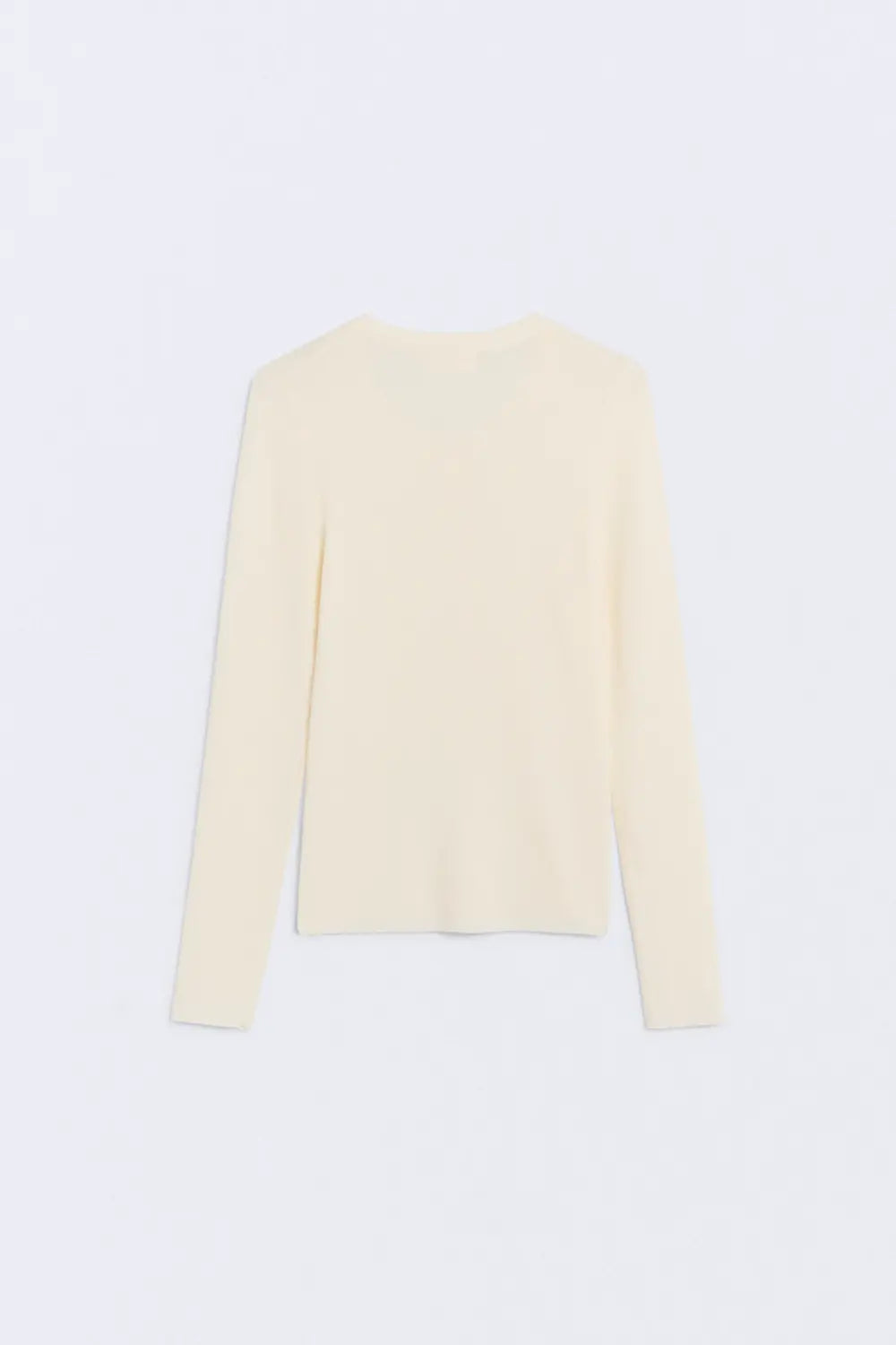 Este jersey de lana de galga fina está diseñado para aportar comodidad, calidez y un estilo depurado en cualquier look. Confeccionado en 100 % lana y tejido en punto lleno, destaca por su tacto suave y su caída ligera, perfecta para el día a día. Su cuello tipo panadero le da un aire auténtico y desenfadado, mientras que el corte ajustado favorece la silueta sin perder confort.