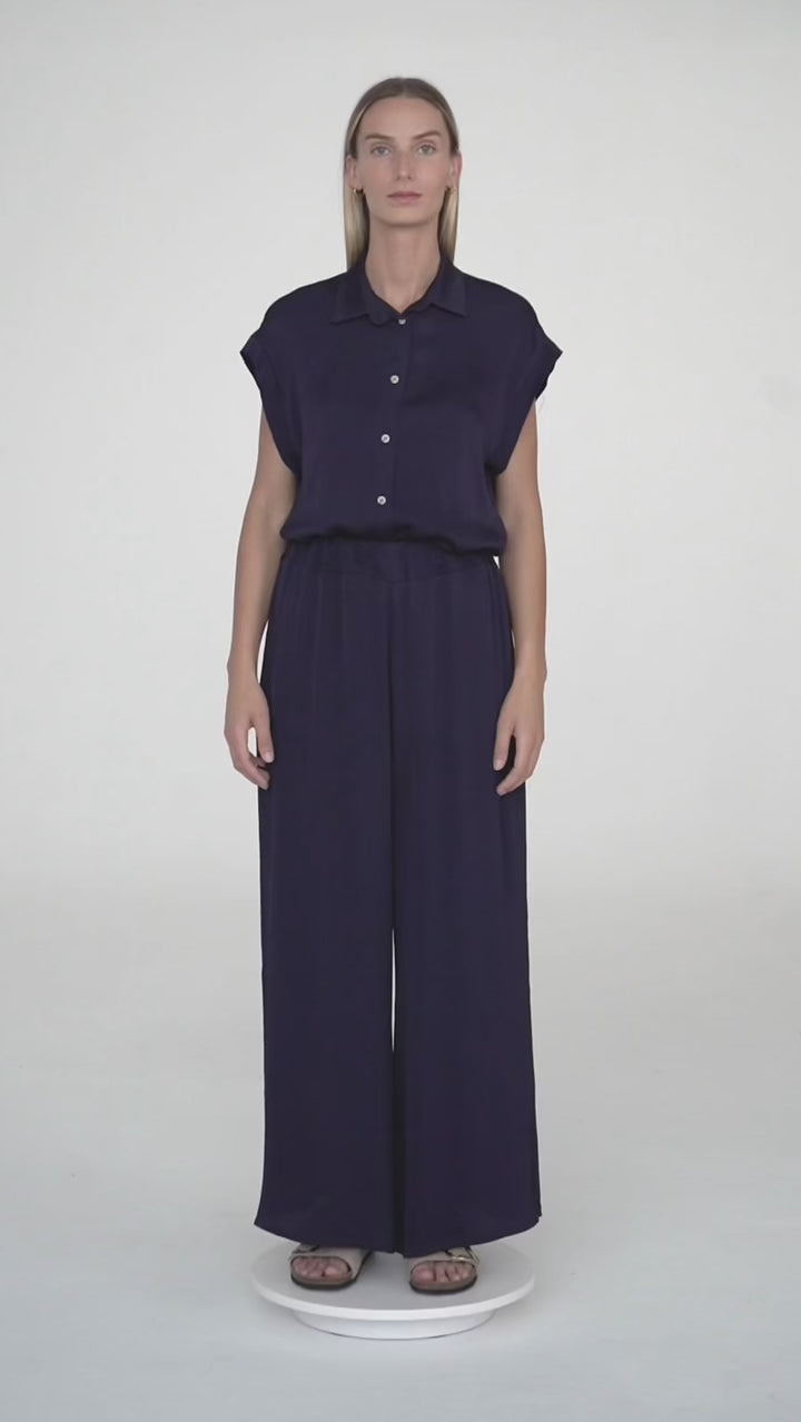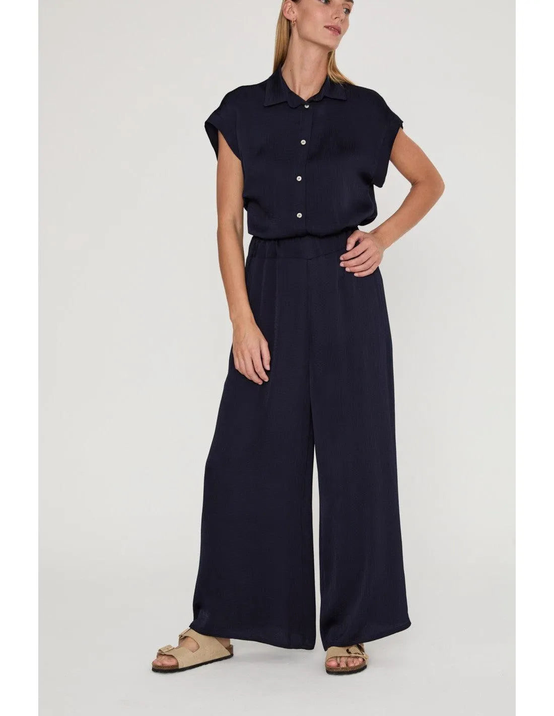 Pantalón palazzo fluido fruncido con goma en la cintura. Crea el total look con la camisa ACHEN o KRUM.