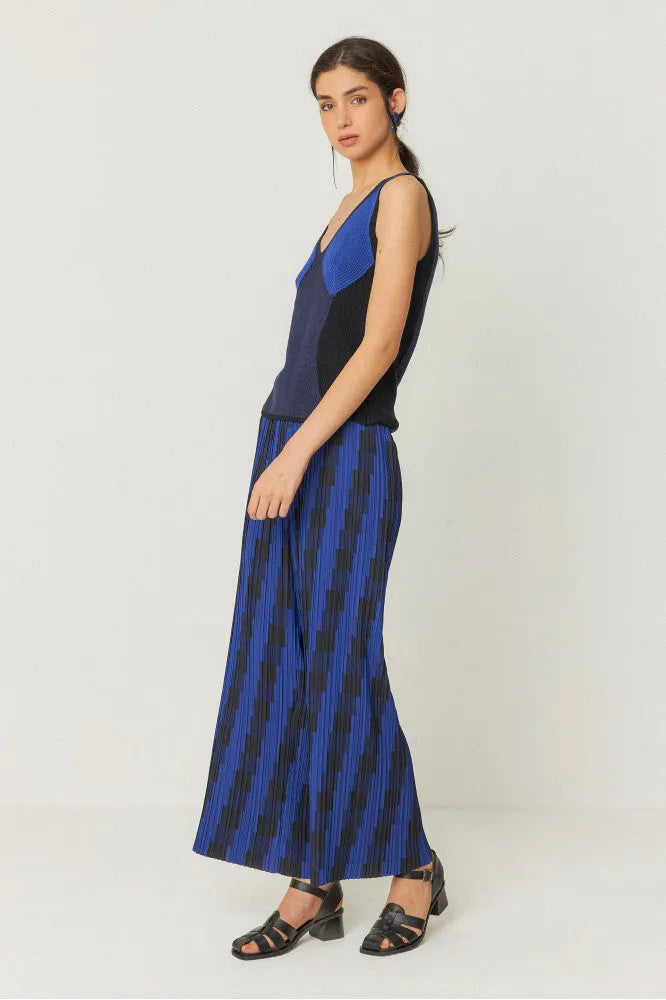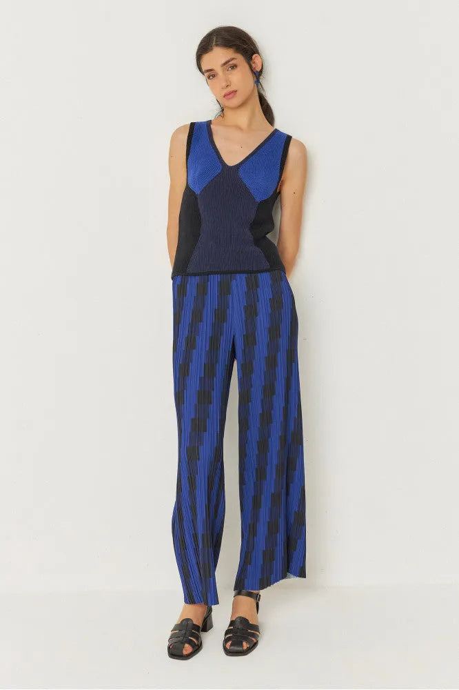 Pantalón de tejido plisado fino hasta los tobillos con la cintura elástica.