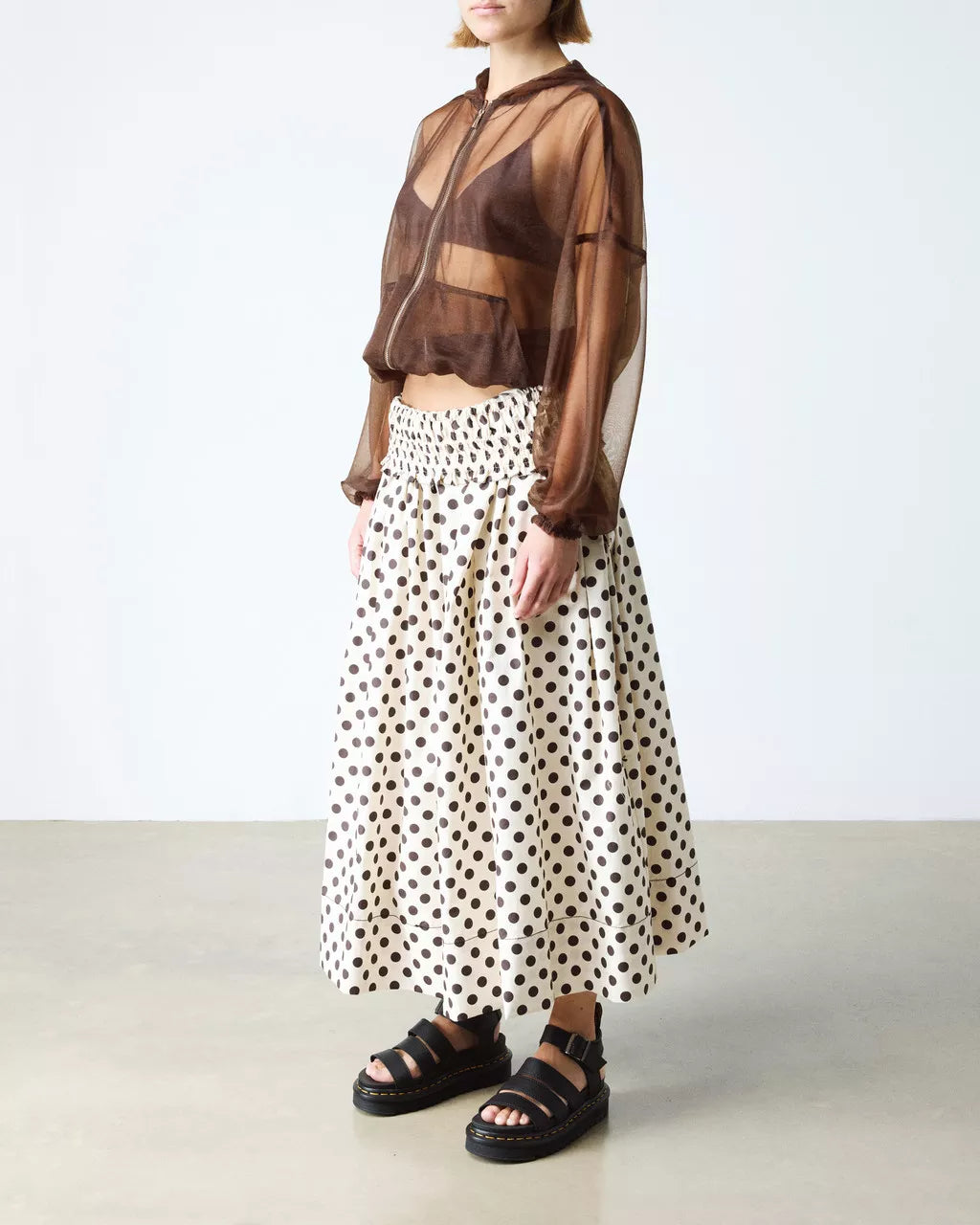 - Con vestido o falda de líneas simples para crear contraste entre ligereza y estructura.