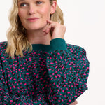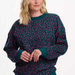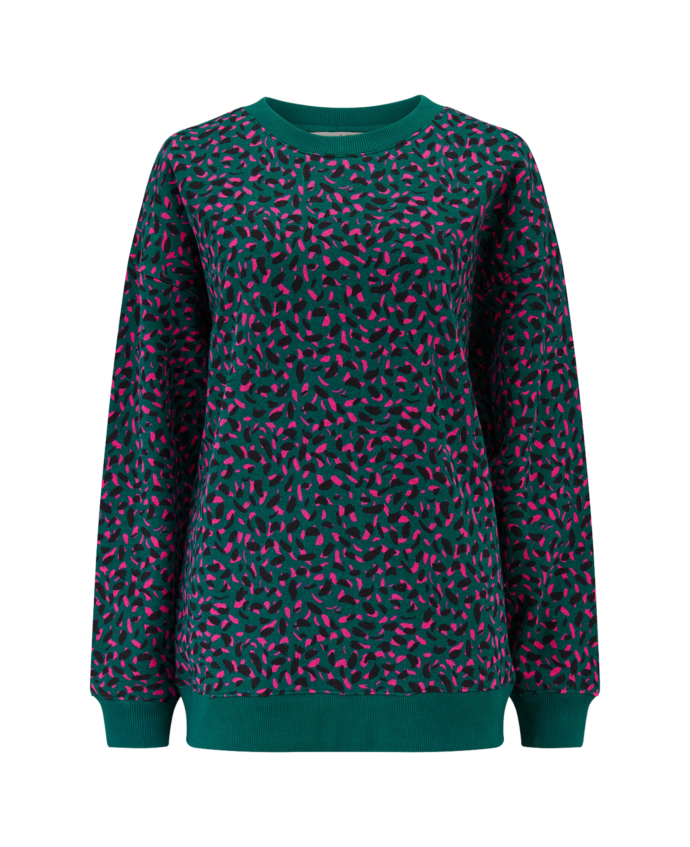 Relajada, atrevida e irresistiblemente suave: la sudadera oversize Eadie está confeccionada en jersey 100 % algodón para ofrecer la máxima comodidad. Esta sudadera de cuello redondo presenta un estampado abstracto inspirado en el leopardo con manchas negras y rosas dispersas sobre un fondo verde azulado intenso. Los hombros caídos y el corte oversize crean una silueta desenfadada, mientras que el interior supersuave la hace perfecta para llevarla todo el día. Combínala con vaqueros o pantalones de chándal para un look informal y desenfadado.