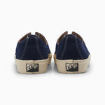 El modelo VM003 es el tercer diseño de calzado vulcanizado de la marca. Cuenta con una abertura de pasadores (“open eyestay”) que proporciona un ajuste ligeramente más amplio en comparación con otros modelos VM. Se han añadido costuras laterales en las zonas críticas de flexión para aumentar la durabilidad. Esta versión se presenta en pana (corduroy) en color DK Navy.