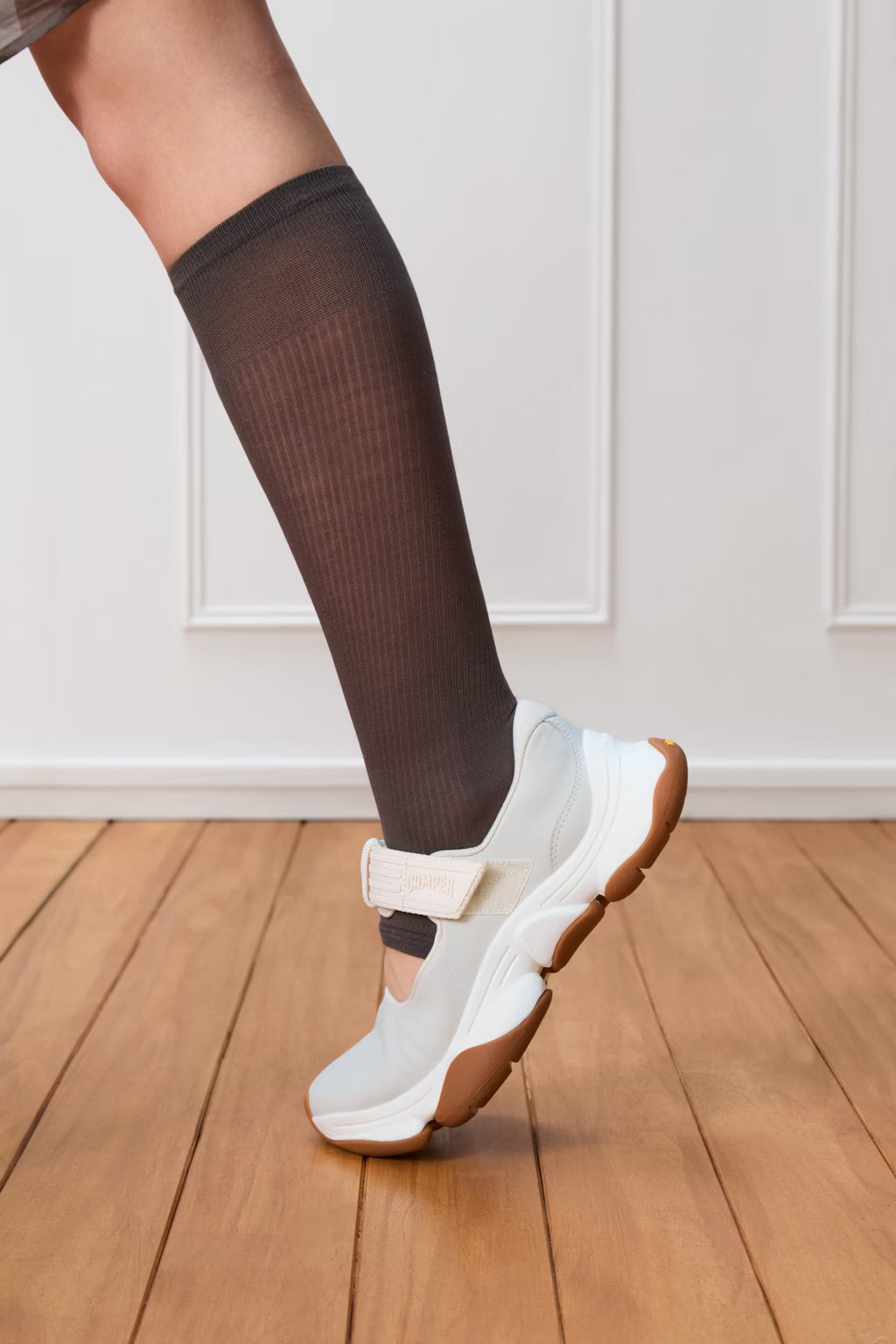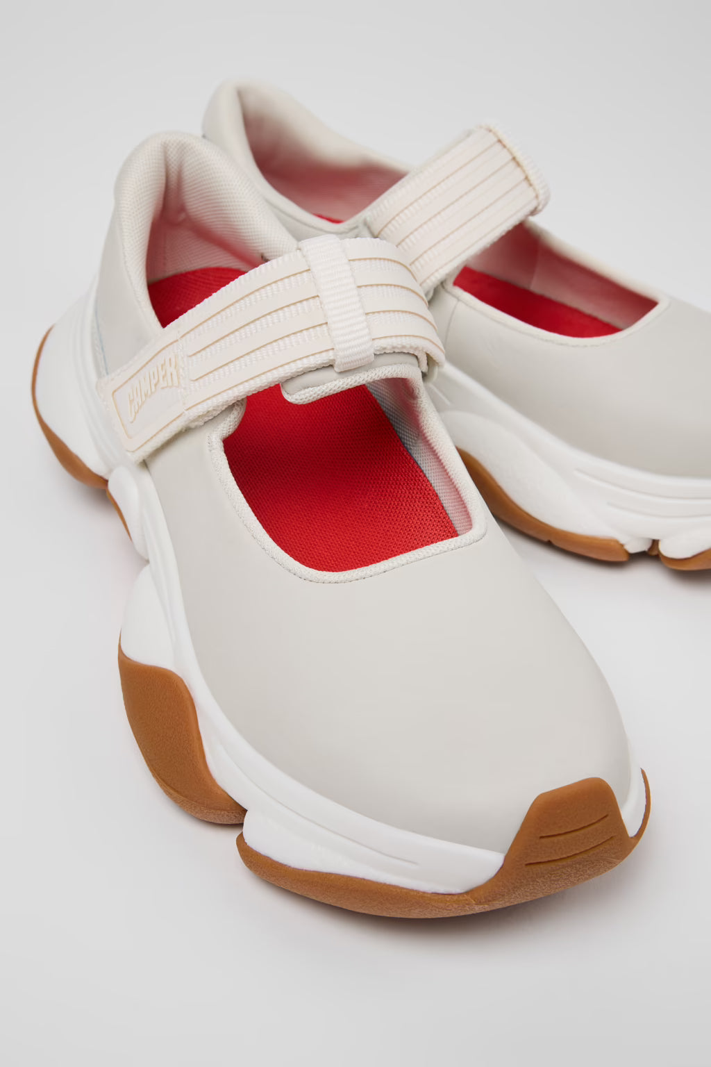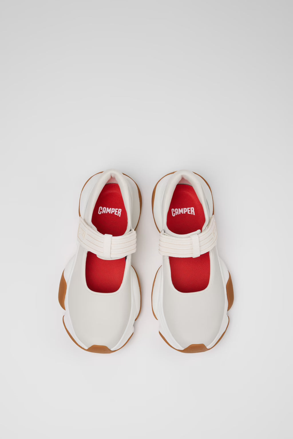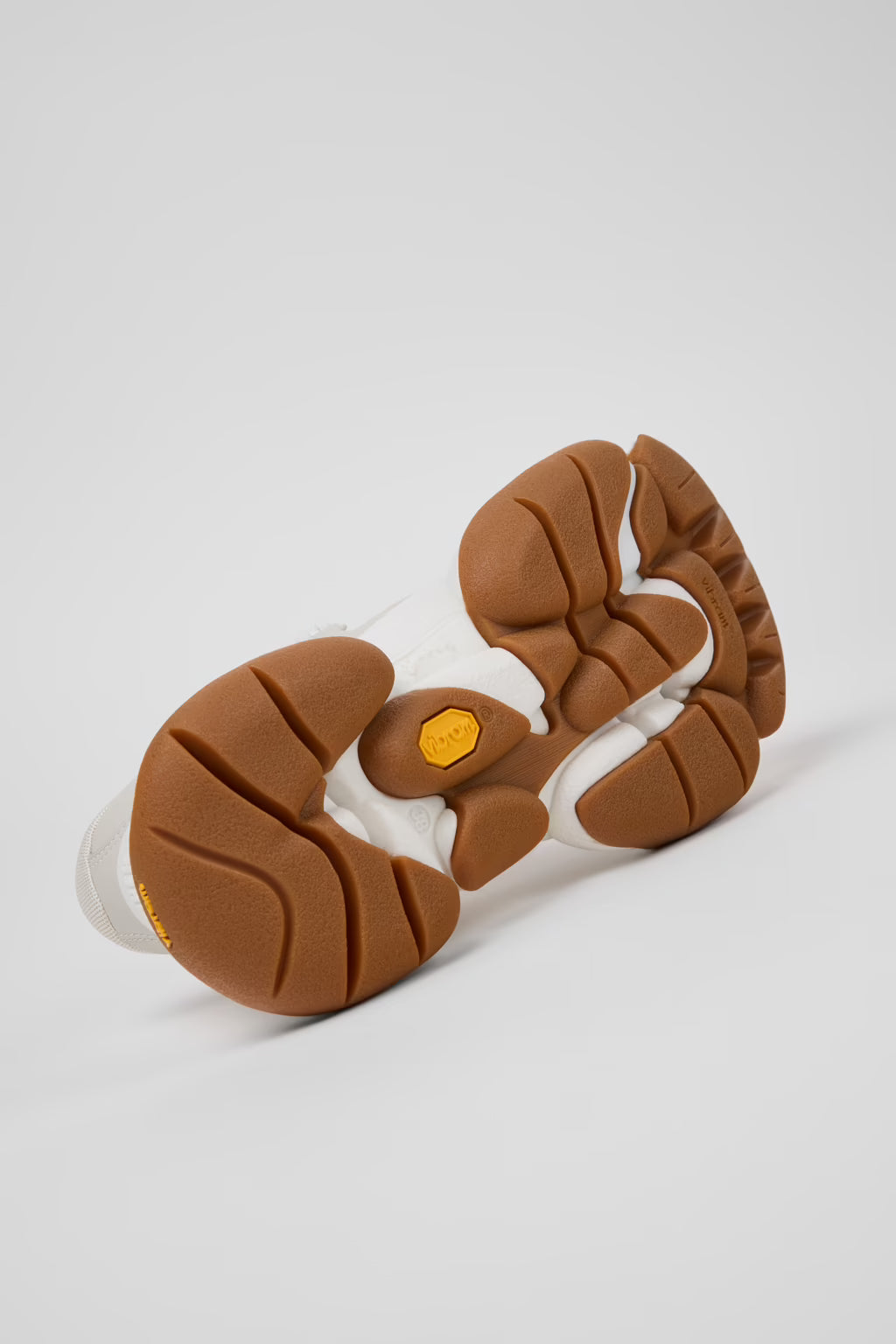 Sneakers blancas para mujer de piel vacuna sin teñir con plantillas OrthoLite® Recycled™, sistema de autocierre, entresuela ReXarge y suelas Vibram (30% recicladas).