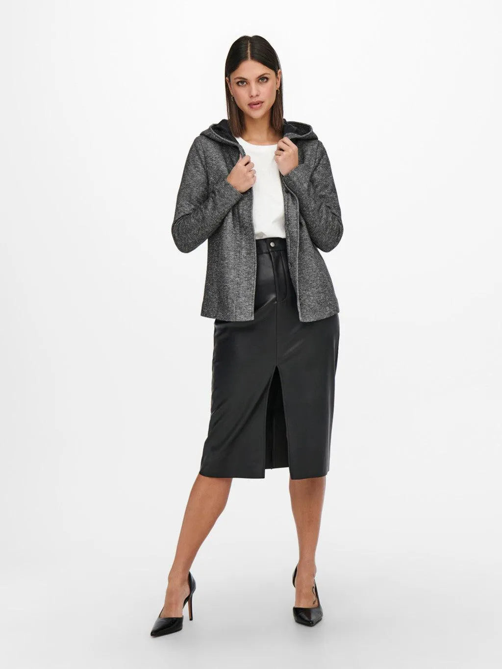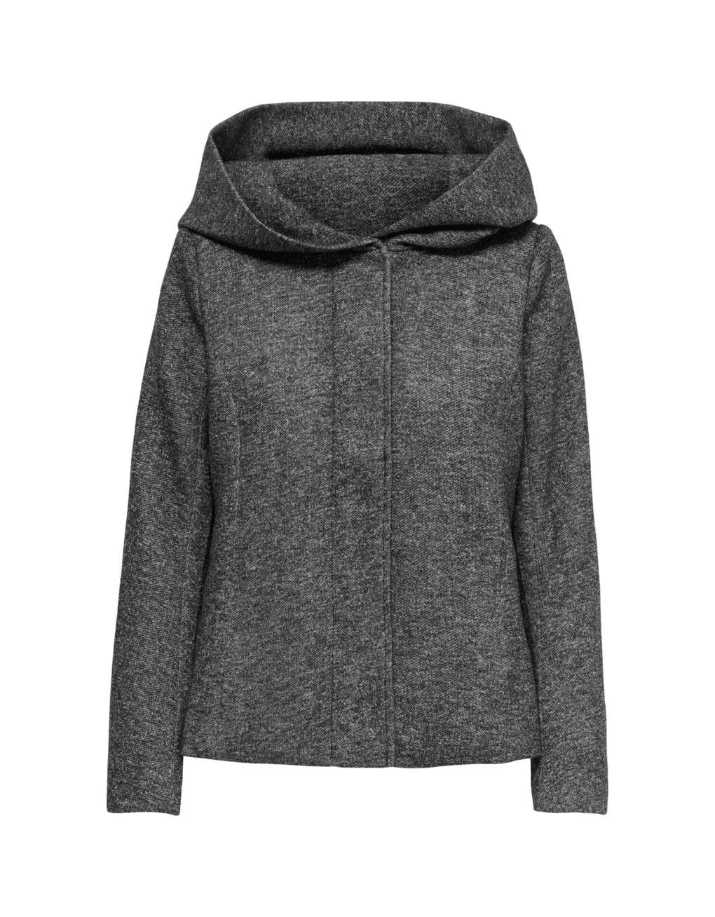 Cazadora corta con capucha- Cierre oculto en la parte delantera- Largo: 63 cm en la talla S- La modelo lleva la talla S