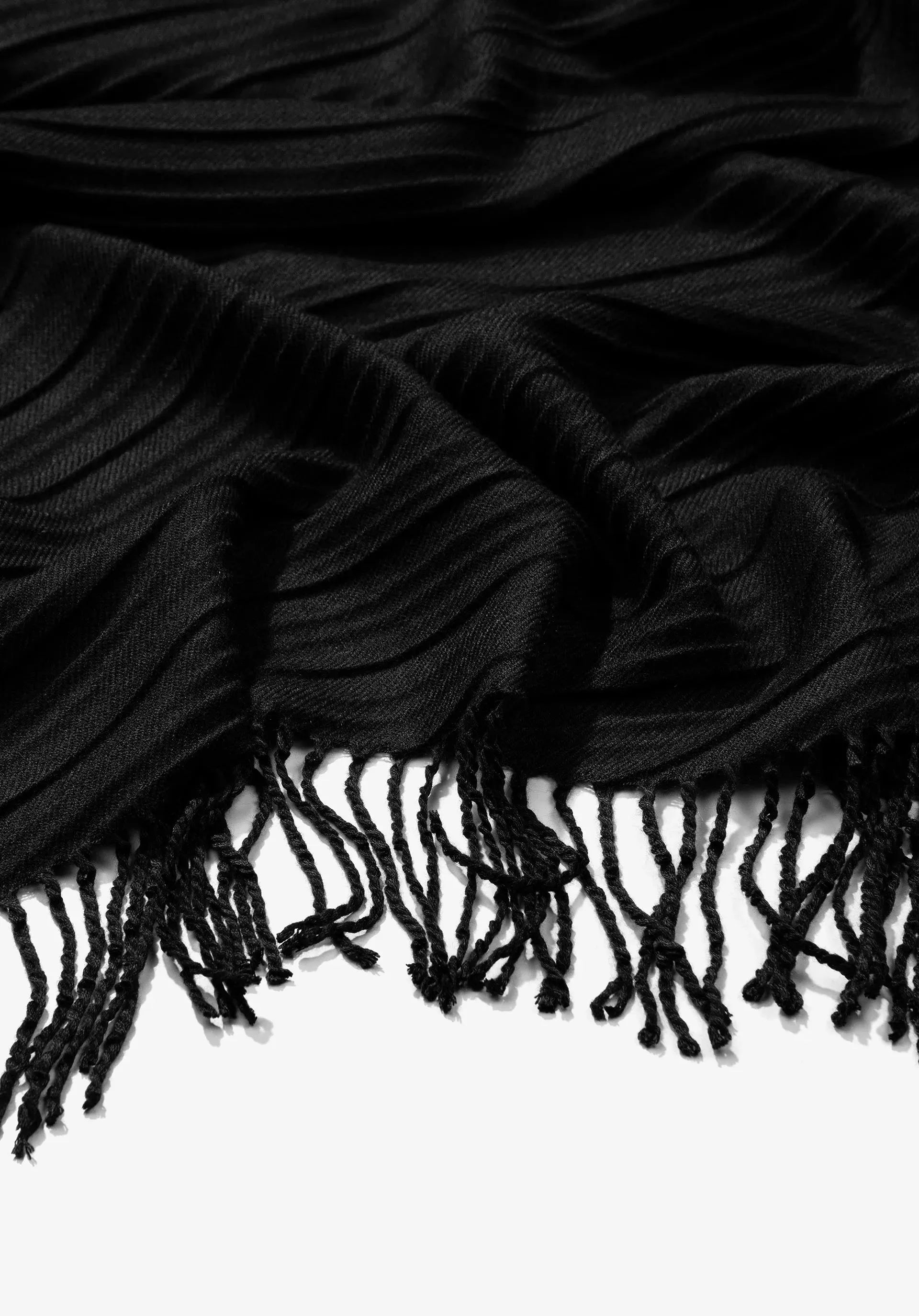Bufanda de tejido estructura con tacto suave. Detalle de flecos.