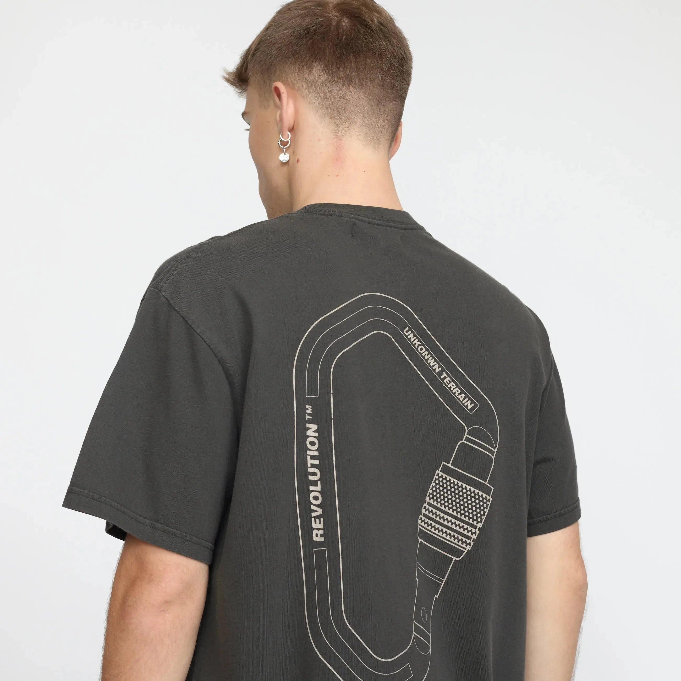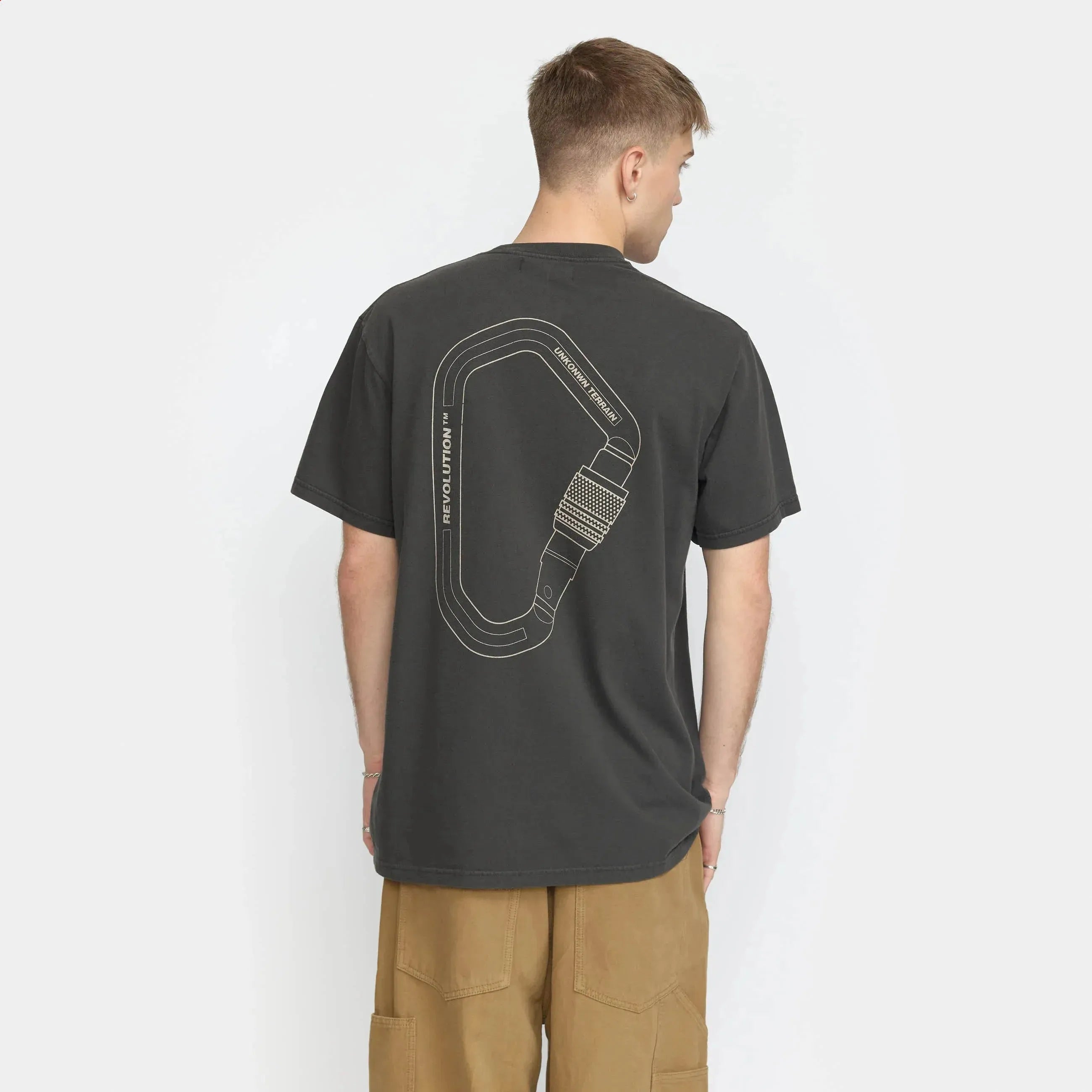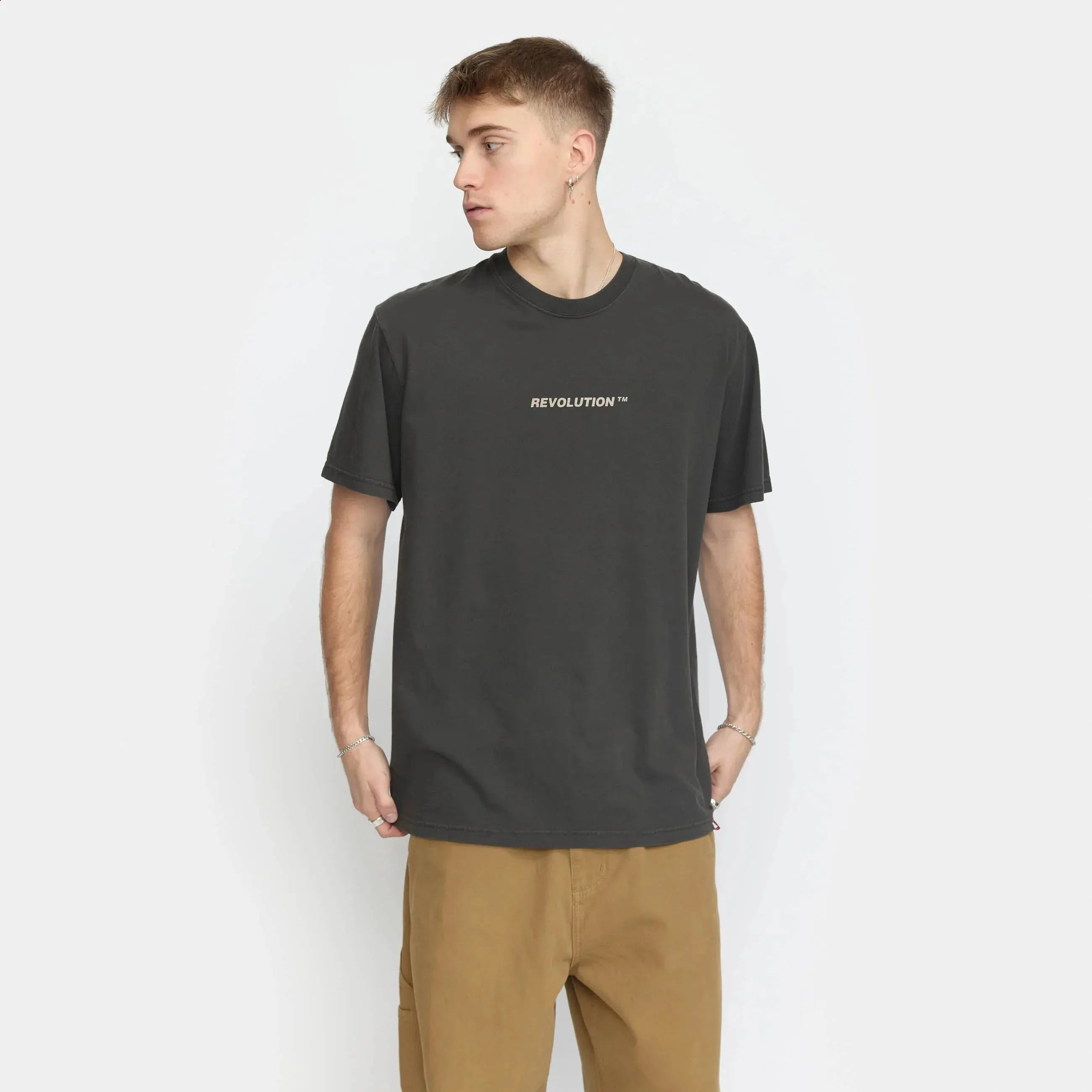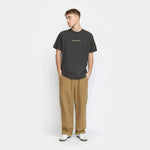Camiseta de corte holgado, cuello redondo y manga corta, confeccionada en punto de algodón orgánico teñido en prenda, con un peso de 200 g/m². El proceso de teñido confiere a la camiseta un fresco aspecto vintage, que gana carácter con el paso del tiempo. El acabado de la camiseta la hace suave y garantiza su estabilidad y durabilidad. El algodón orgánico se cultiva a partir de semillas no modificadas genéticamente, sin fertilizantes ni pesticidas químicos, lo que favorece la biodiversidad y tiene un menor impacto en el equilibrio ecológico. La camiseta presenta un pequeño estampado monocromo en el pecho, un gran estampado en el centro de la espalda y una etiqueta de la marca en la parte inferior.