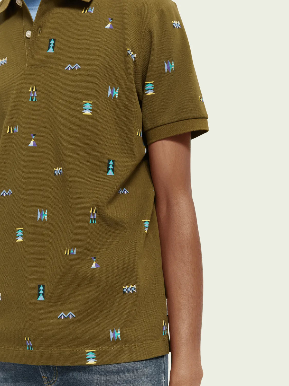 El polo es un favorito versátil: se puede vestir fácilmente para cualquier ocasión. Adornado con un estampado integral y acabado con un cuello clásico y una tapeta de dos botones.