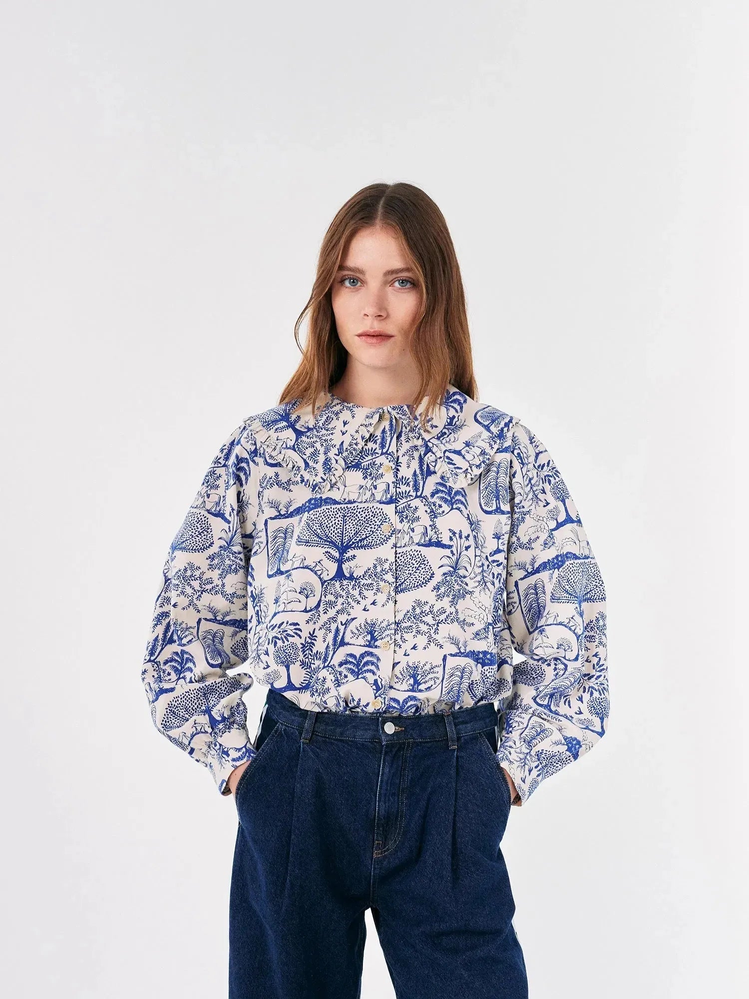 La camiseta Wonderland, confeccionada con algodón BCI, es una prenda única que luce un gran paisaje estampado repleto de plantas en tonos azules. Con su corte ligeramente holgado y su tejido no elástico, ofrece un cómodo movimiento. Su diseño atemporal y creativo hace que sea fácil de combinar con otras prendas.