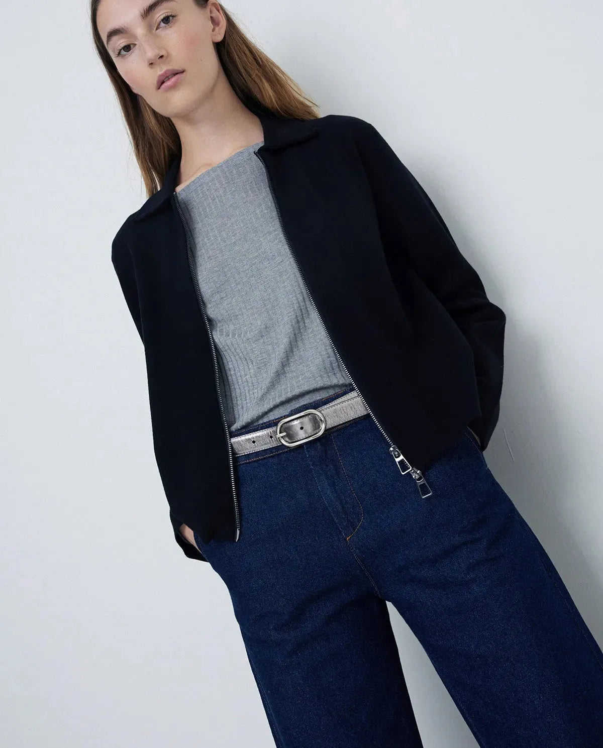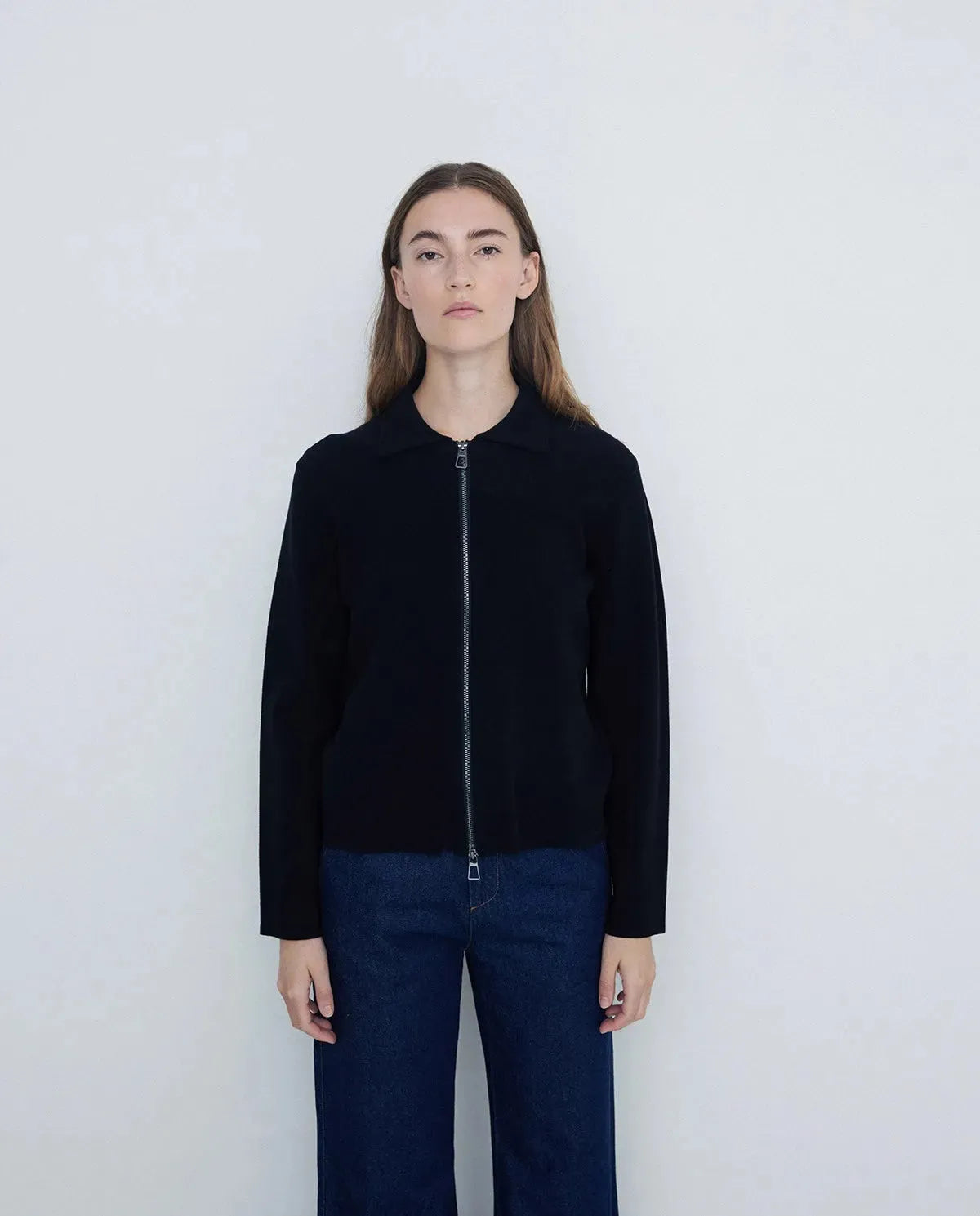 Cárdigan con cremallera. Cuello con solapa. Manga larga.