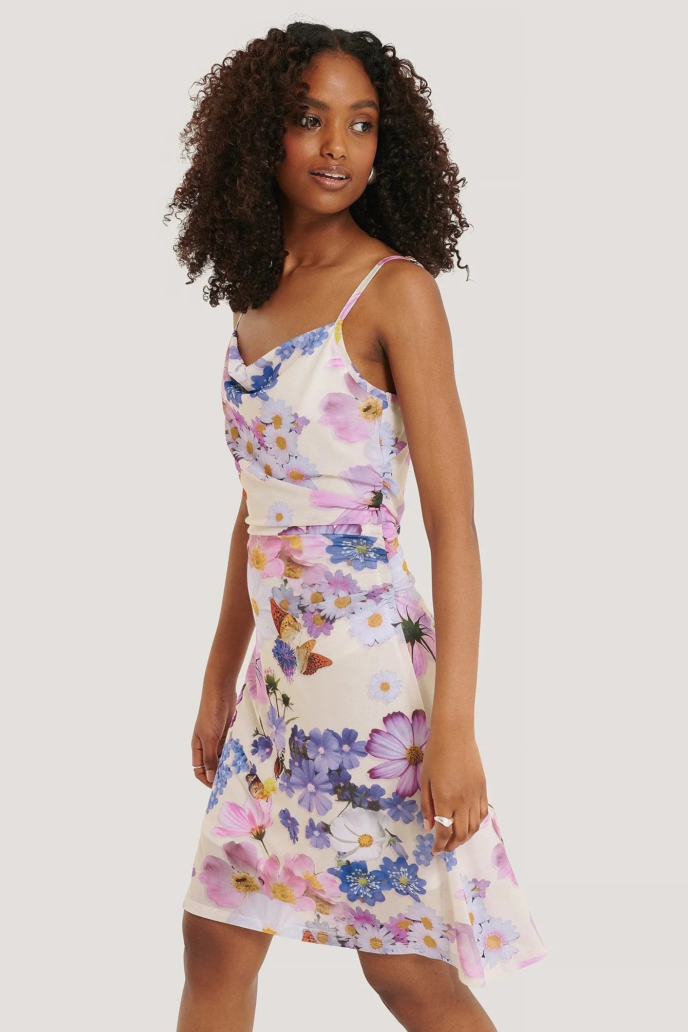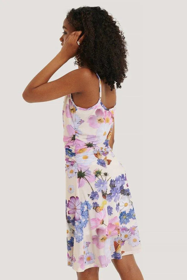 Este vestido tiene un corto, un tirante ajustable, un fruncido al lado, un escote decorado y forro interior no extraíble. Este vestido es disponible en blanco y púrpura.