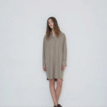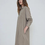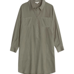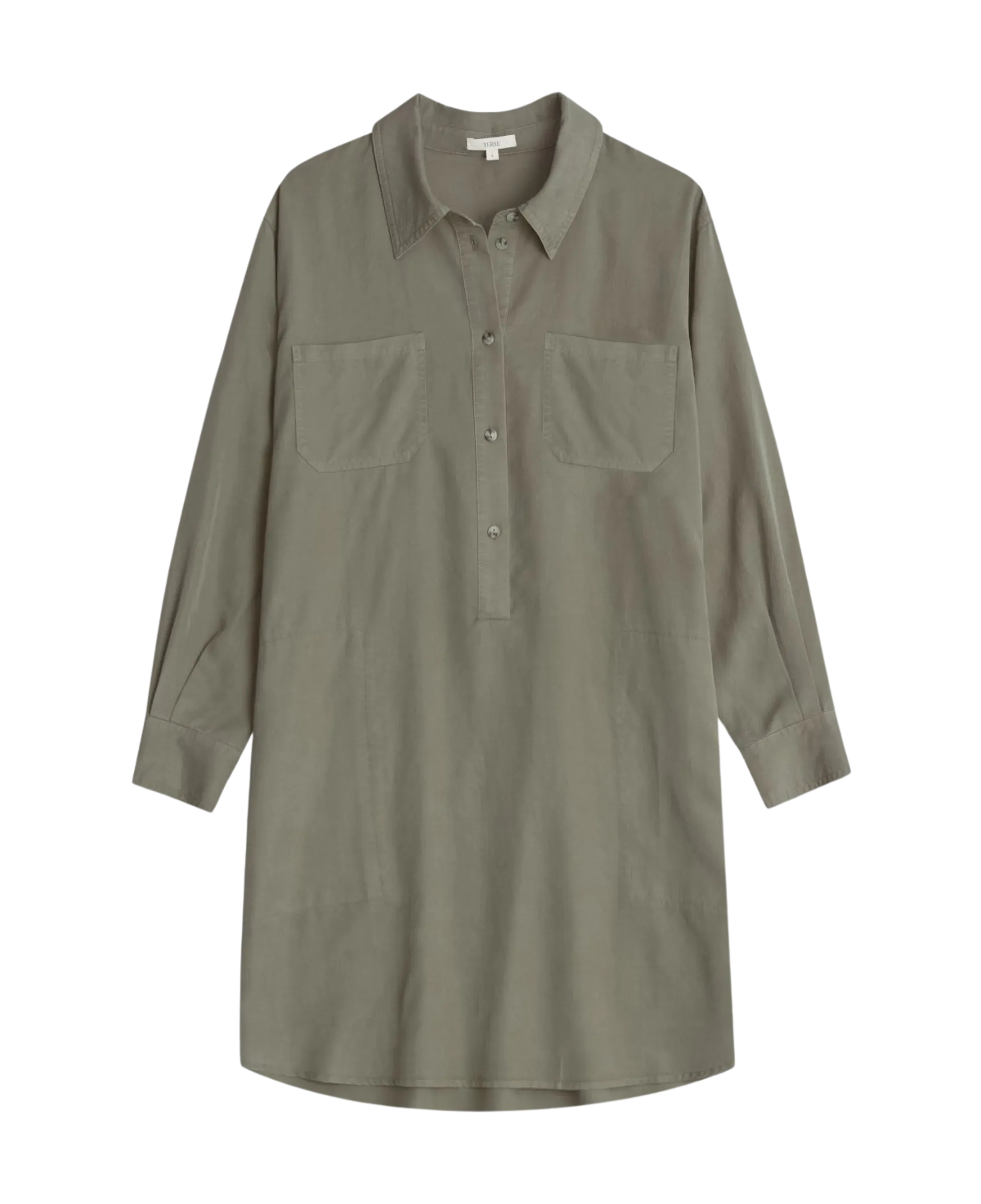 Vestido camisero de Tencel. Diseño corto. Cuello camisero. Manga larga. Bolsillos laterales. Abertura frontal con botones.