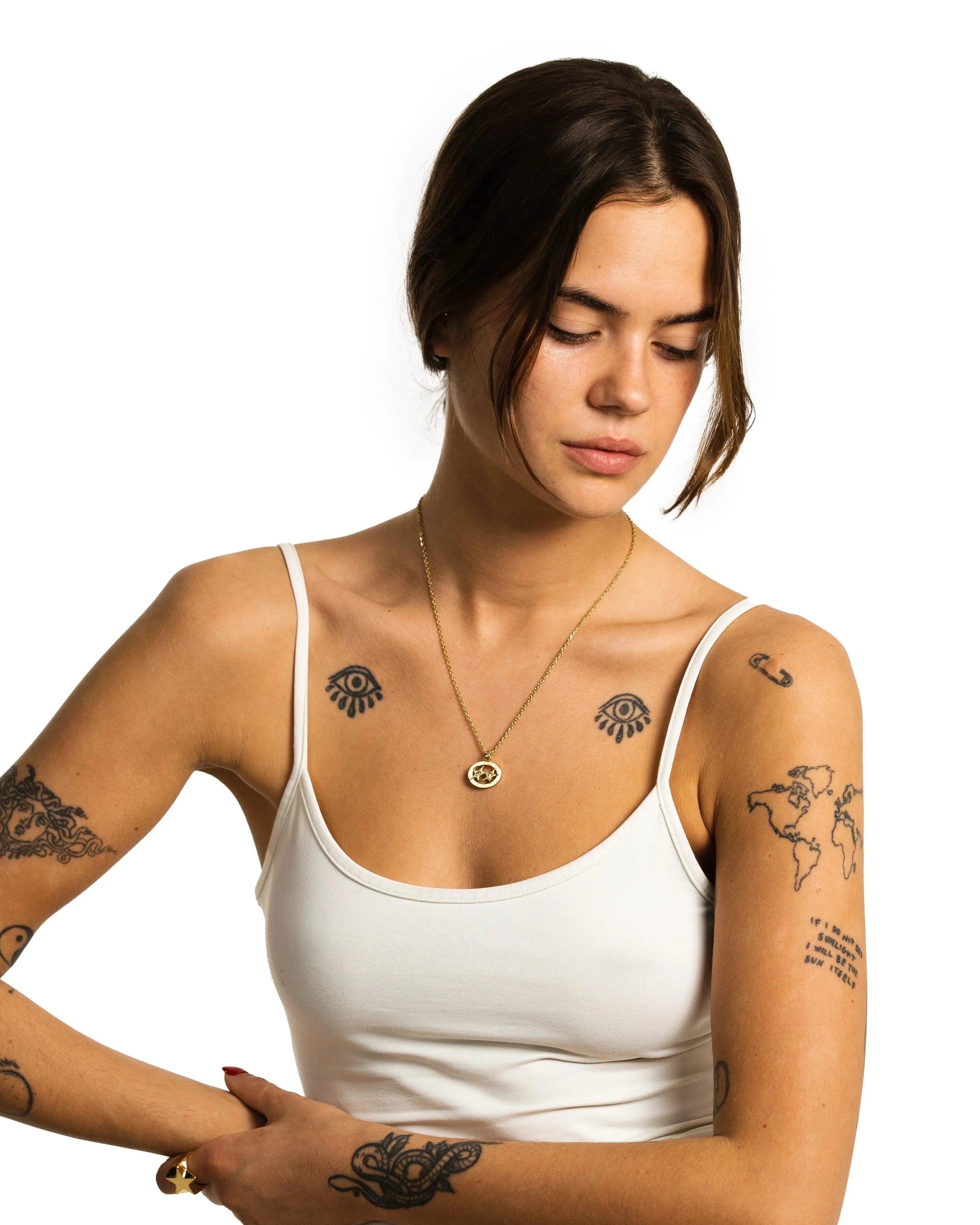 El collar Superstar incluye un colgante artesanal con el logotipo del icono en relieve que cuelga de una cadena de plata 925.