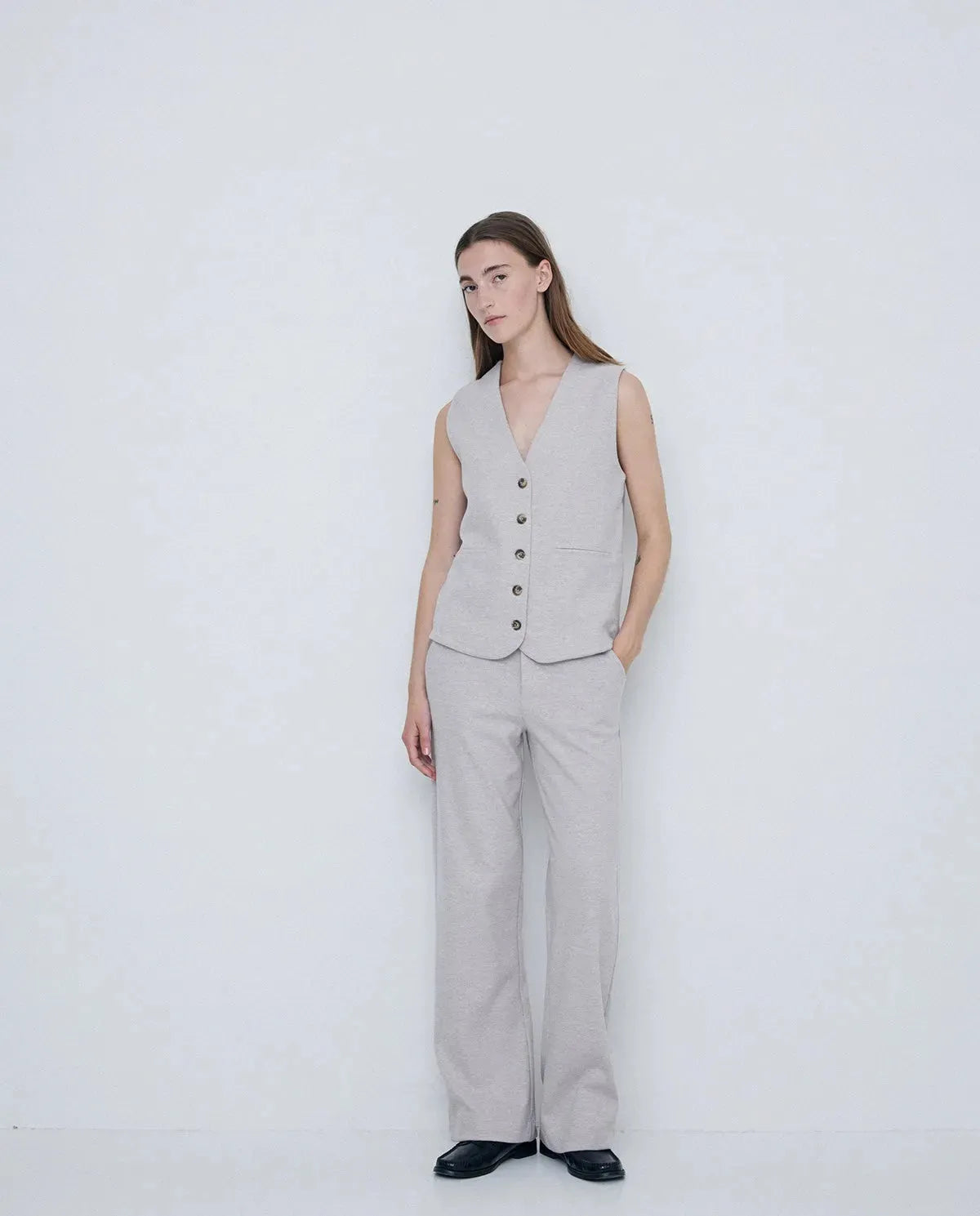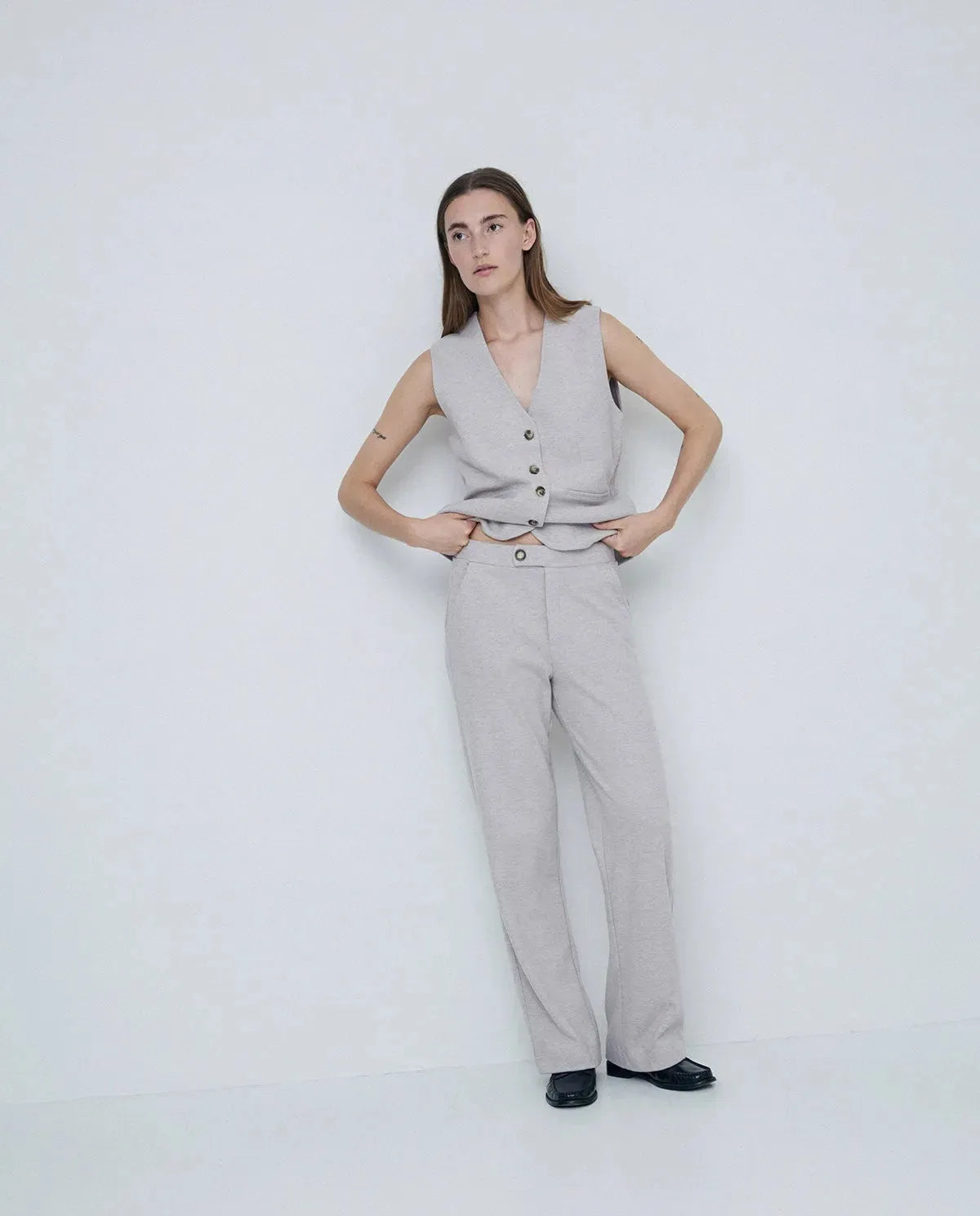 Pantalones YERSE Anchos en Piqué Aroa Beige