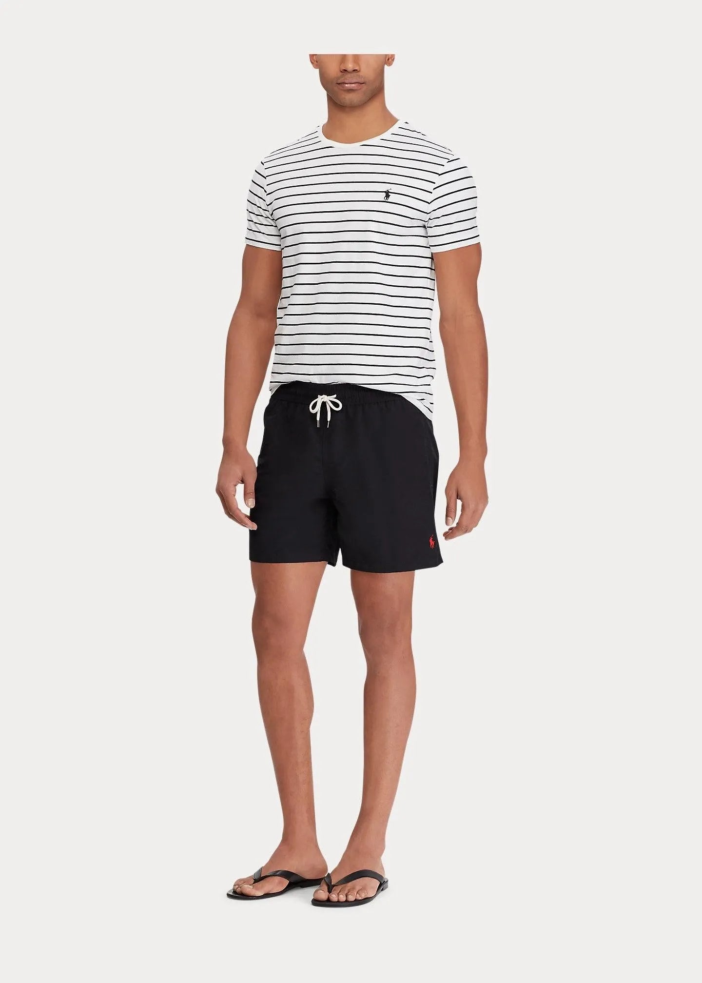 Este bañador bermuda con forro de malla, rematado con nuestro caballo bordado marca de la casa, le permite lucir el impecable estilo Polo tanto dentro como fuera del agua.
