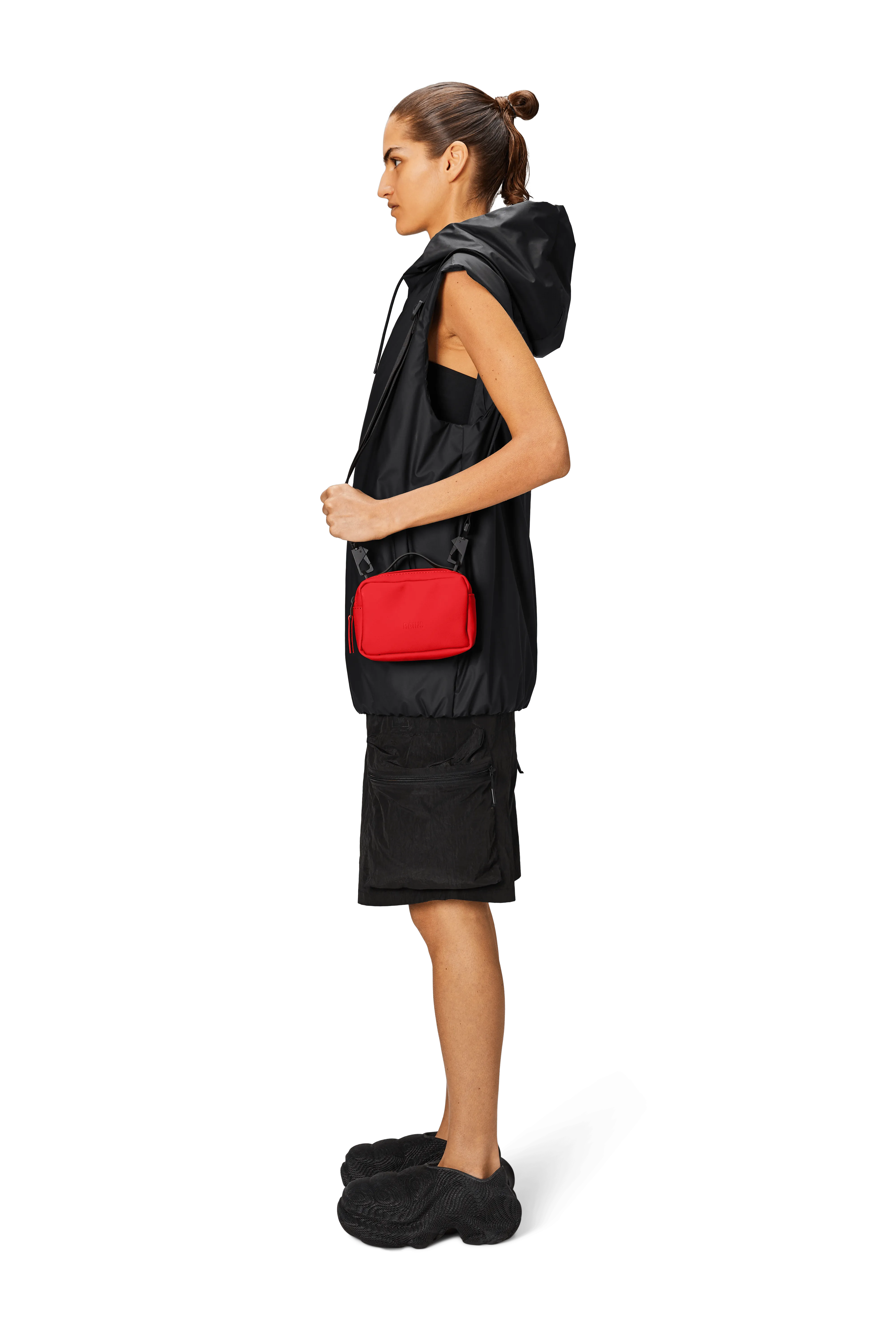 El bolso Box Bag Micro es una versión reducida del Rains Box Bag. Este modelo impermeable y funcional de líneas limpias ha sido diseñado para llevar al hombro, como bandolera o como bolso de mano. Su silueta compacta y cuadrada es perfecta para combinar con cualquier look y tiene el tamaño perfecto para llevar los objetos básicos imprescindibles de diario. El diseño se completa con una correa tejida ajustable que se une al bolso con dos mosquetones.