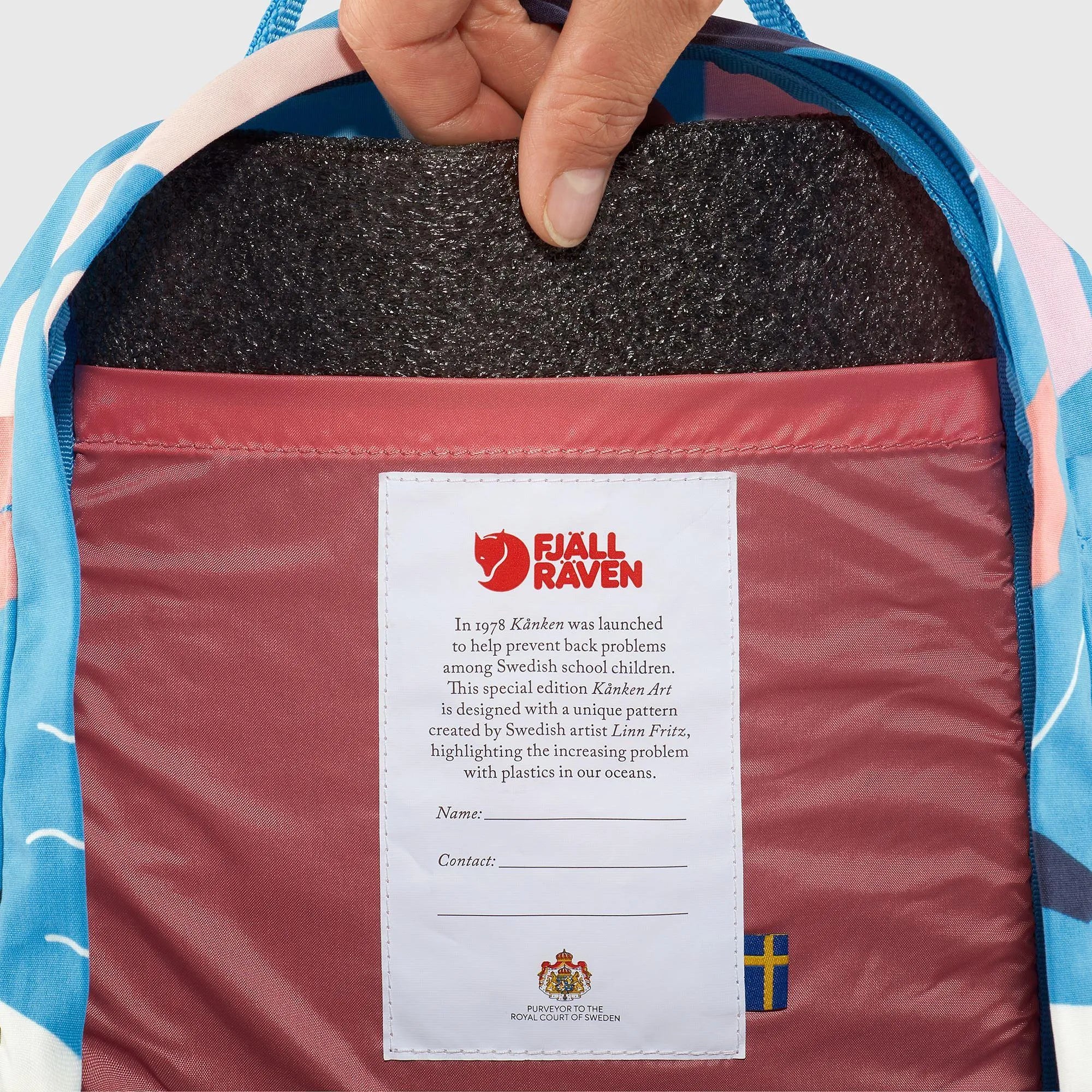 Kånken Art es lo que obtienes cuando invitas a artistas a expresar su relación con la naturaleza utilizando la mochila clásica como lienzo. La mochila tiene un estampado gráfico único y las correas largas para los hombros se pueden ajustar para adaptarse tanto a niños como a adultos. Viene con una almohadilla para el asiento en el bolsillo trasero interior que evita que el contenido del compartimento principal presione contra la espalda. Parte de la iniciativa Arctic Fox de Fjällräven, donde parte de las ventas se destina a proyectos medioambientales y climáticos. NOTA: La apariencia de cada mochila variará ligeramente debido a la tela estampada.