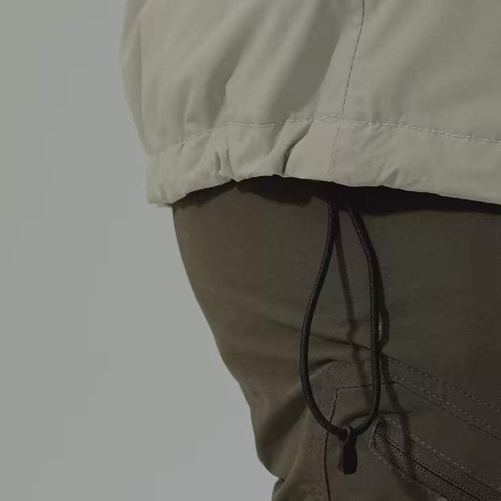 - Cordón elástico interior con topes de bloqueo en el bajo para brindar un ajuste preciso