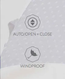Paraguas corto con mango curvado de cierre y apertura automático y con protección contra el viento.